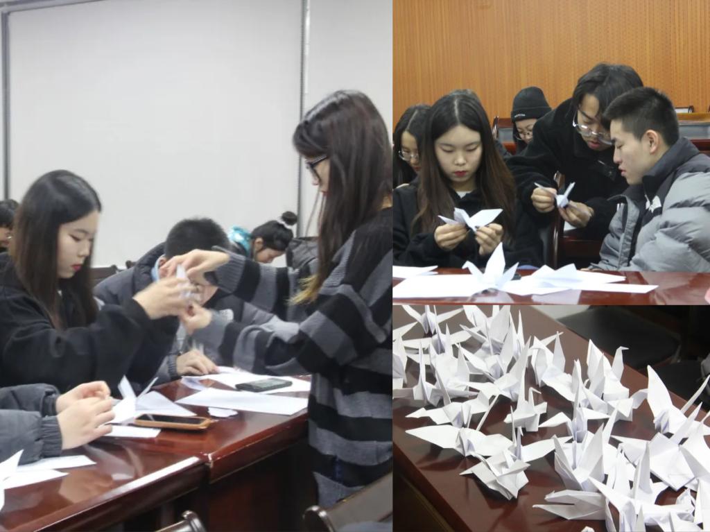 重温历史,深知今日和平来之不易。四名学生代表朗诵《和平宣言》,立下誓言:“继往开来,永志不忘!”勿忘国耻,吾辈奋进。作为当代的青年学子,有幸生于和平时代,长于国家强盛之时,德扑学子们更当立足专业特色,发挥专业特长,勇担历史使命,勿忘过去的苦难辉煌,无愧今天的使命担当,不负未来的伟大梦想,为国家富强和民族振兴贡献自己的力量。全体学子自制千纸鹤,以此缅怀死难者同胞,祈愿永久的和平。我们深知今日之和平来之不易,愿战争之火长弭 ,愿和平之花常开。