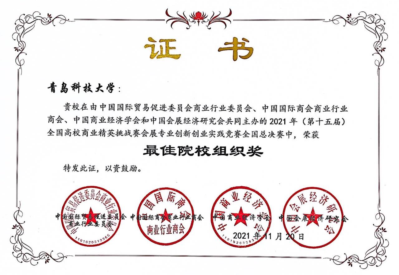 代表队在全国总决赛中荣获国家级一等奖1项,国家级二等奖4项,国家级三等奖3项;在山东省总决赛中荣获省级一等奖5项,省级二等奖10项,省级三等奖9项,参赛作品质量和获奖总数名列全省高校前列。学校获评全国总决赛“最佳院校组织奖”。