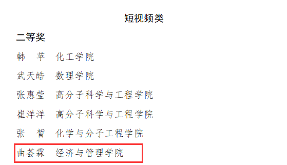 其中,2021级ACCA专业曲荟霖的作品“‘张灯结彩迎新年,齐心协力谱新篇‘喜迎新年”获二等奖并评得“最佳创作人”,2019级城市管理专业阿依妮尕尔·艾尼作品获最佳创意奖,2021级研究生戚豪越及2021级本科生汤馨洁等16人作品获“网络人气奖”。