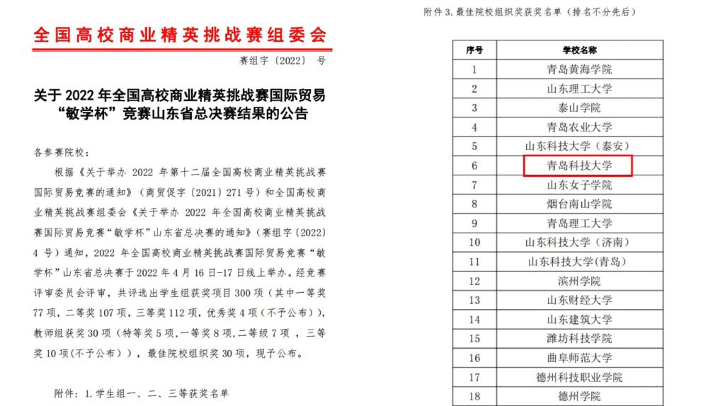 近日,2022年全国高校商业精英挑战赛国际贸易竞赛山东省总决赛竞赛结果公布。德州扑克俱乐部