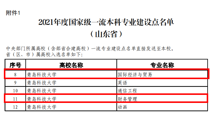 近日,教育部办公厅发布《关于公布2021年度国家级和省级一流本科专业建设点名单的通知》,我院国际经济与贸易、财务管理专业成功获评国家一流本科专业建设点,这是我院继工商管理专业获评国家级一流本科专业之后,在专业建设上取得的又一重大突破。