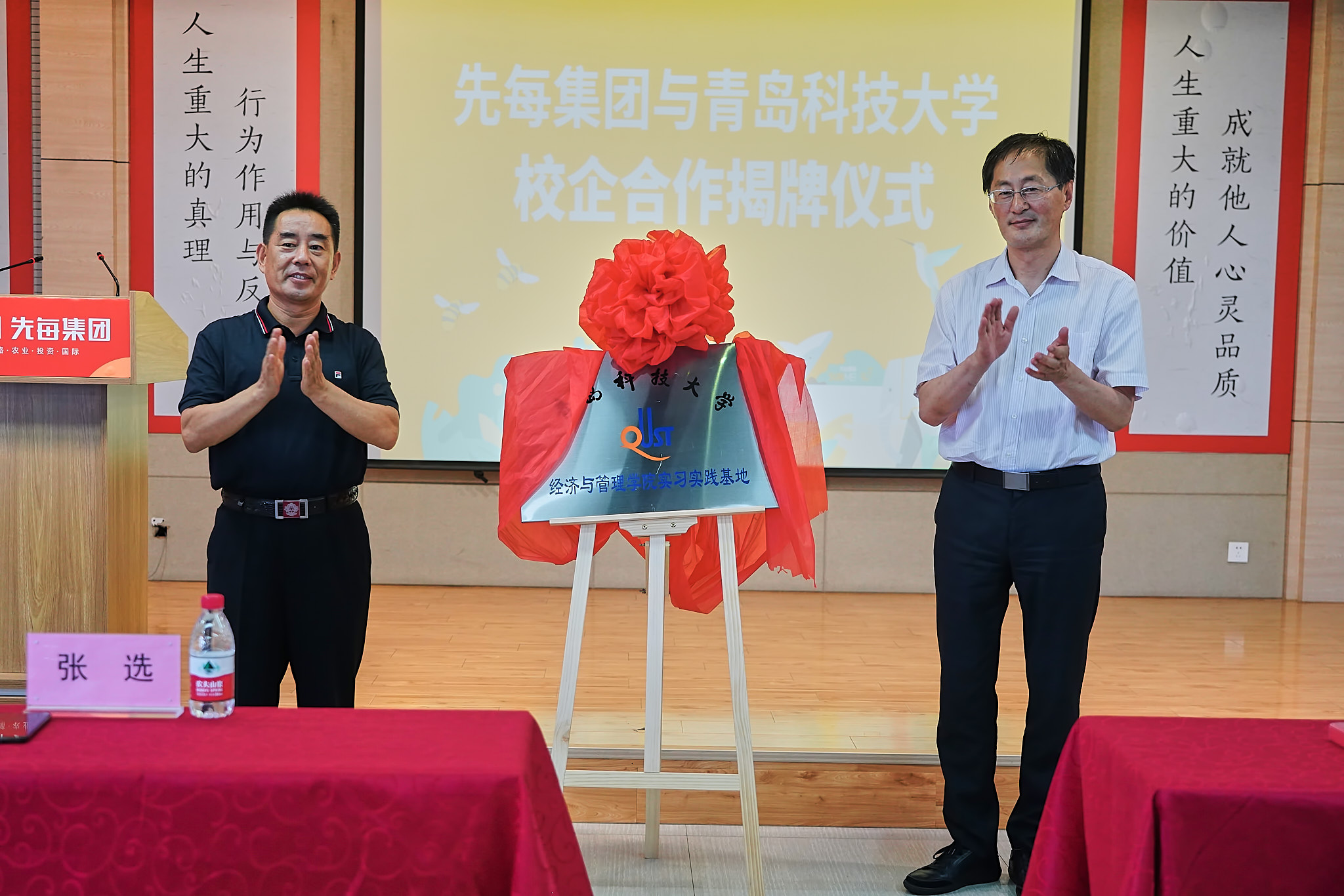 将把握与先每集团的合作机遇,建立起稳固、长期的合作关系,本着共研、共建、共享、共用、共赢的原则,与先每集团在人才输送、科研培训等方向达成合作,共同搭建优质人才培养体系和人才成长发展环境,构建高质量、高水平、高层次的人才培养模式。随后,双方进行校企合作签约揭牌仪式。