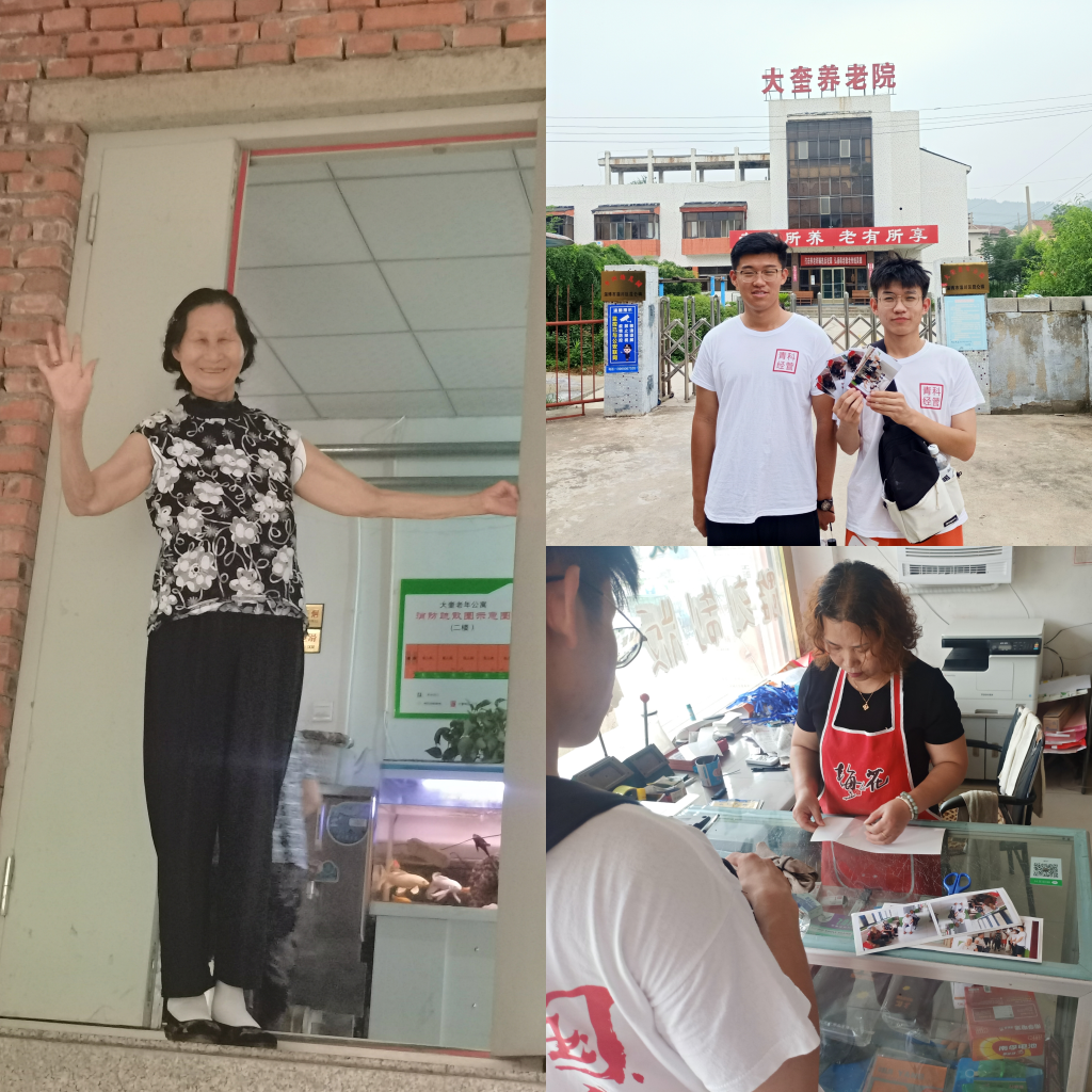 7月12日上午,团队成员去昆仑镇奎四村养老院的最后一天,团队成员和老人进行合影留念,为了能够给老人留下快乐,团队成员去最近的照相馆将照片打印出来,然后原路返回将照片留到老人的手中,乡愁是一张小小的照片,承载着对家人的思念。志愿服务结束之后,团队成员和老人们一一告别,并叮嘱老人要照顾好身体,多多休息。
