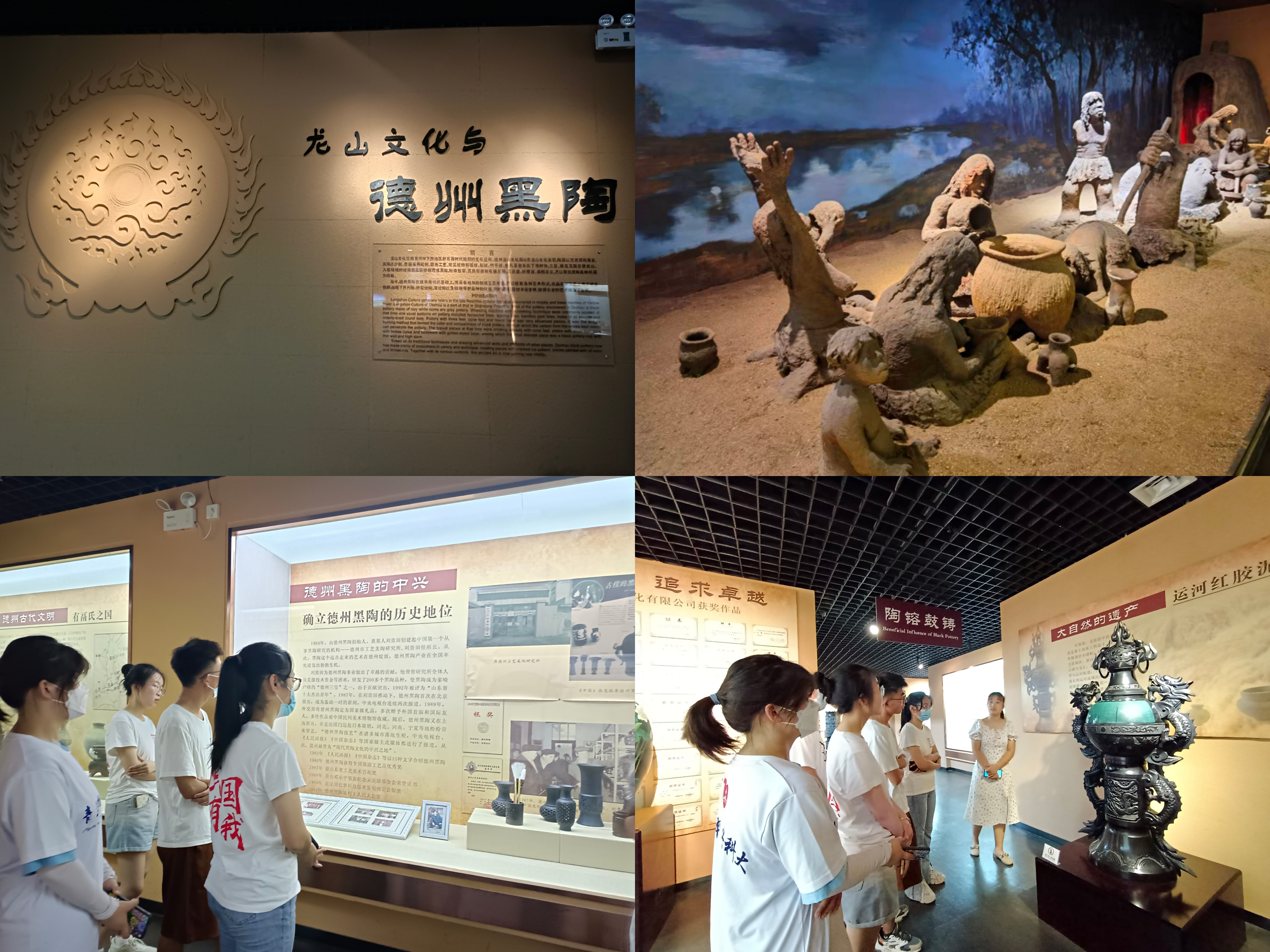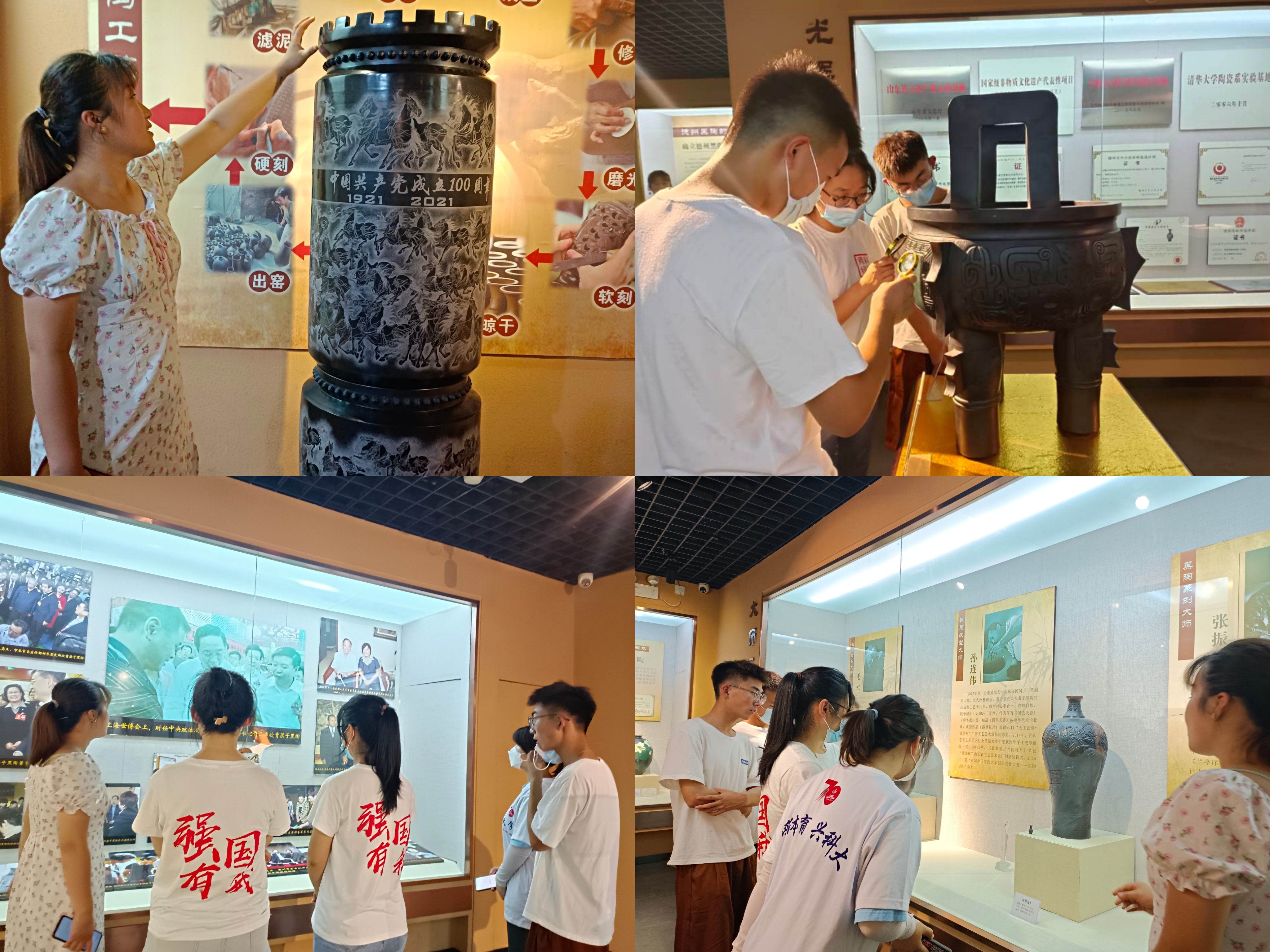 为了加强对中国非物质文化遗产的了解、传承和保护,积极响应保护非遗的方针政策,让非遗文化被更多人所熟知,7月13日-14日,青岛科技大学赴德州市德城区德州梁子黑陶文化发扬团成员前往山东省德州市黑陶城博物馆进行实地参观,近距离领略了“点土成陶”这一化腐朽为神奇的过程,聆听了一曲黑陶制作的“金木水火土”交响乐,感知了黑陶的魅力——器型美、色彩美、雕刻美、纹饰图案美,深切地感受到了黑陶文化的前世今生。