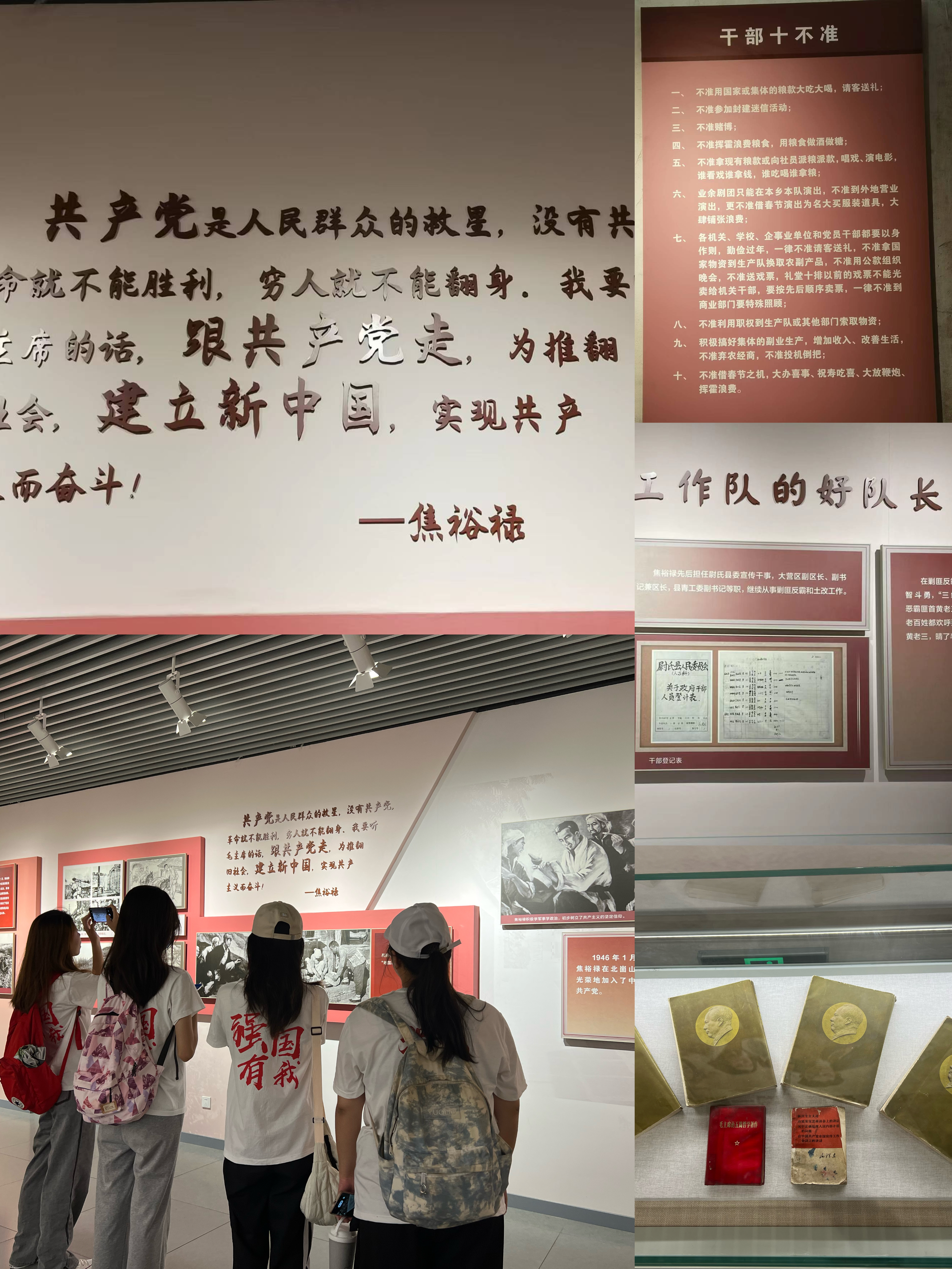 1946年1月,焦裕禄同志在北崮山村光荣地加入了中国共产党。焦裕禄是县委书记的榜样,党员干部的楷模。他心中有党、心中有民、心中有责、心中有戒,以自身实际行动激励和感染着一代又一代党员干部和人民群众。在纪念馆中根据讲解员的讲解以及纪念馆内雕塑文字等内容,我们了解到焦裕禄精神中不忘初心、为党为民的核心内涵,为进一步贯彻落实党“全心全意为人民服务”的执政理念固本筑基。人民怀念焦裕禄,是因为焦裕禄这面旗帜上永远镌刻着“人民”二字;时代呼唤焦裕禄,是因为焦裕禄精神始终保持着引领社会前行的时代活力。实践队员纷纷表示,焦裕禄精神跨越时空、历久弥新,永远是鼓舞我们艰苦奋斗、执政为民的强大思想动力;永远是激励我们求真务实、开拓进取的宝贵精神财富,永运定格在历史上,永远不会过时。