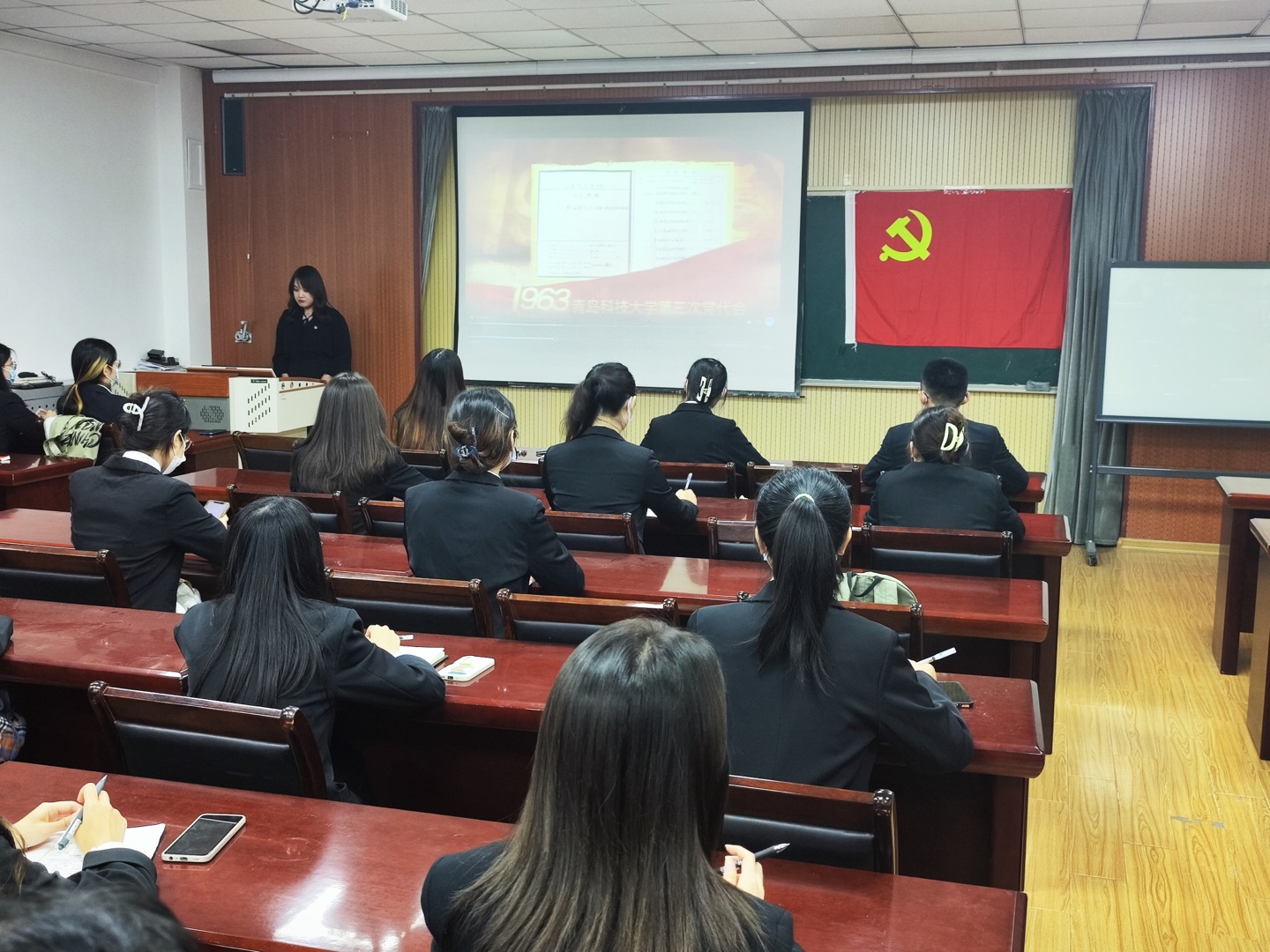 首先,全体党员共同观看青岛科技大学历次党代会视频,体悟学校发展所取得的显著成绩和宝贵经验。随后,张鸣就青岛科技大学第十次党代会召开以来取得的成就经验、青岛科技大学第十一次党代会召开背景、发展目标与战略路径做深入解读。张鸣指出,作为党员,要筑牢理想信念之基,紧跟时代步伐、紧随时代要求,认真学习青岛科技大学第十一次党代会的理论知识,脚踏实地、奋楫争先,当先锋、做表率,充分发挥党员的先锋模范作用。