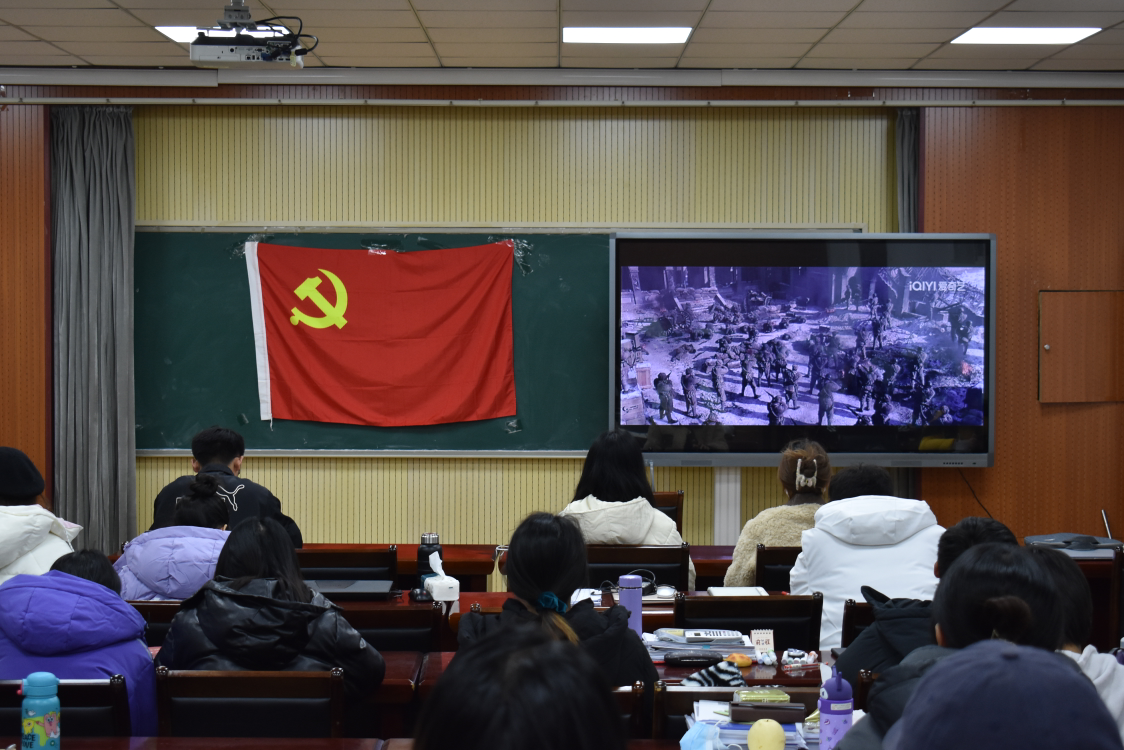 高质量教育发展步伐,具有重大的现实意义,必须全面学习、全面把握、全面贯彻、全面落实。随后,读书班的同学们在老师的带领下观看红色电影,感受先烈们英勇奉献的爱国精神,从红色基因中汲取前进的力量,成长为能担当民族复兴大任的时代新人,同时也使同学们在忙碌的学习生活之余,通过观看电影来放松身心,舒缓焦虑。电影再现了战争年代将士们保家卫国、不怕流血牺牲的革命精神。引导学生将先辈卓越的品质与精神迁移到当下疫情防控阻击战中,众志成城,努力奋斗。电影结束后,同学们结合感悟体会上台分享二十大报告解读,共同领会党立党为公,执政为民的执政理念,深刻体会党的二十大精神。活动结束后,读书班同学纷纷表示要切实落实对党的二十大的学习,坚定信心、扎实肯干、学深悟透,持续推动学习党的二十大精神往深里走、往心里走、往实里走。