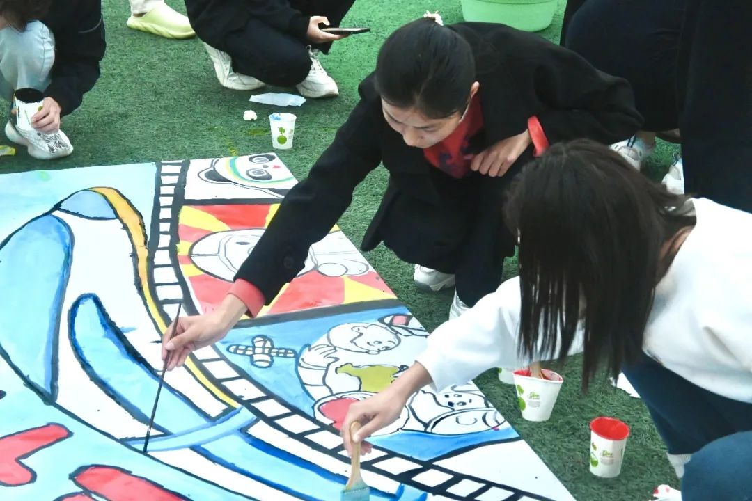 于南苑操场组织开展“共绘壮美山河,共谱盛世华章”逐梦心连心活动,通过手工作品绘制引导德扑学子以青春之名书写清澈之爱,以手中颜料献礼五彩中华,一笔一画展现心中的无限自豪,为讲好中国故事、开启时代新征程绘就更靓丽的青春底色。