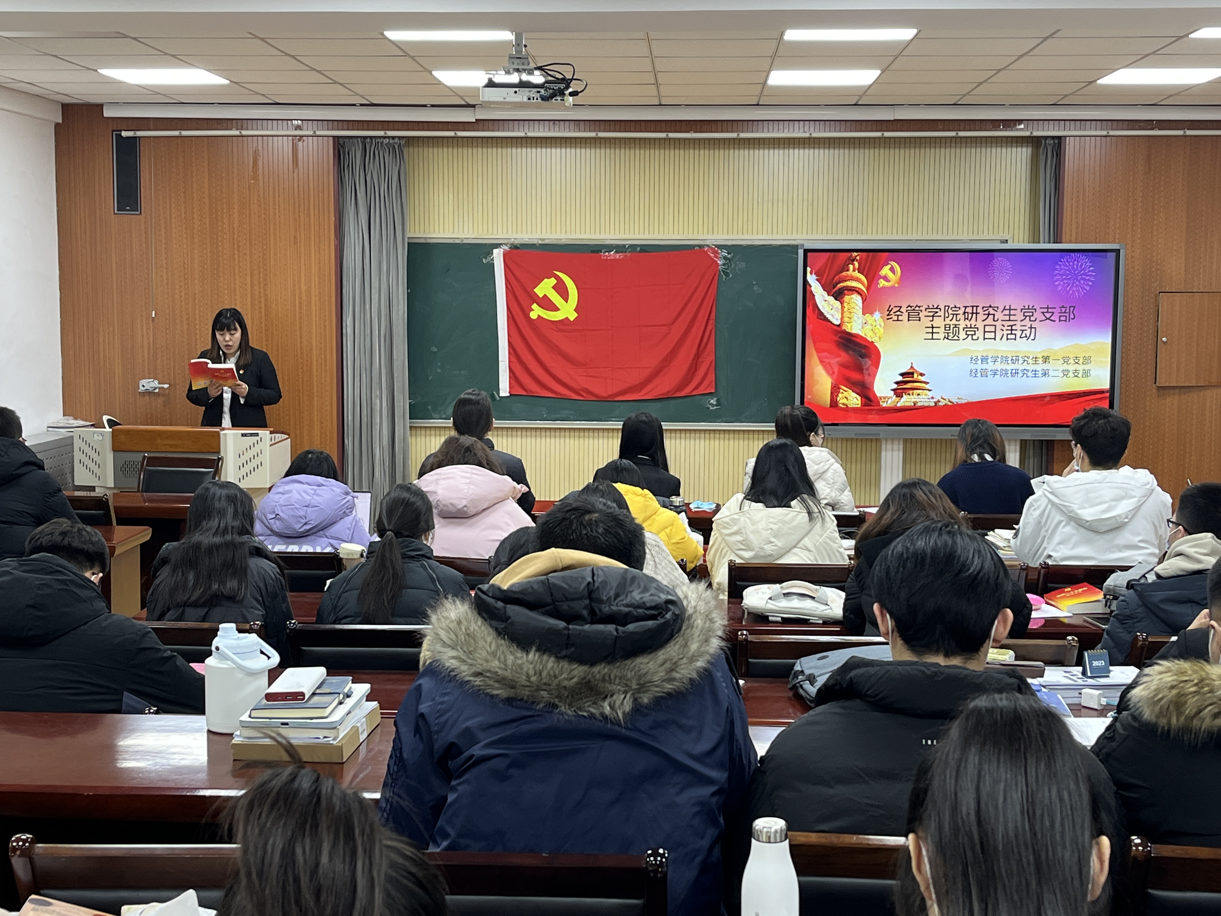 为深入学习宣传贯彻党的二十大精神,在全院范围内掀起持续学习热潮,12月2日晚,研究生党支部于德扑楼504开展“赓续英烈红色血脉,绘就当代青春底色”爱国主义教育主题党日活动暨学习宣传贯彻党的二十大精神专题会议,研究生党支部书记王聪老师、张显全老师出席会议,全体研究生党员参会。