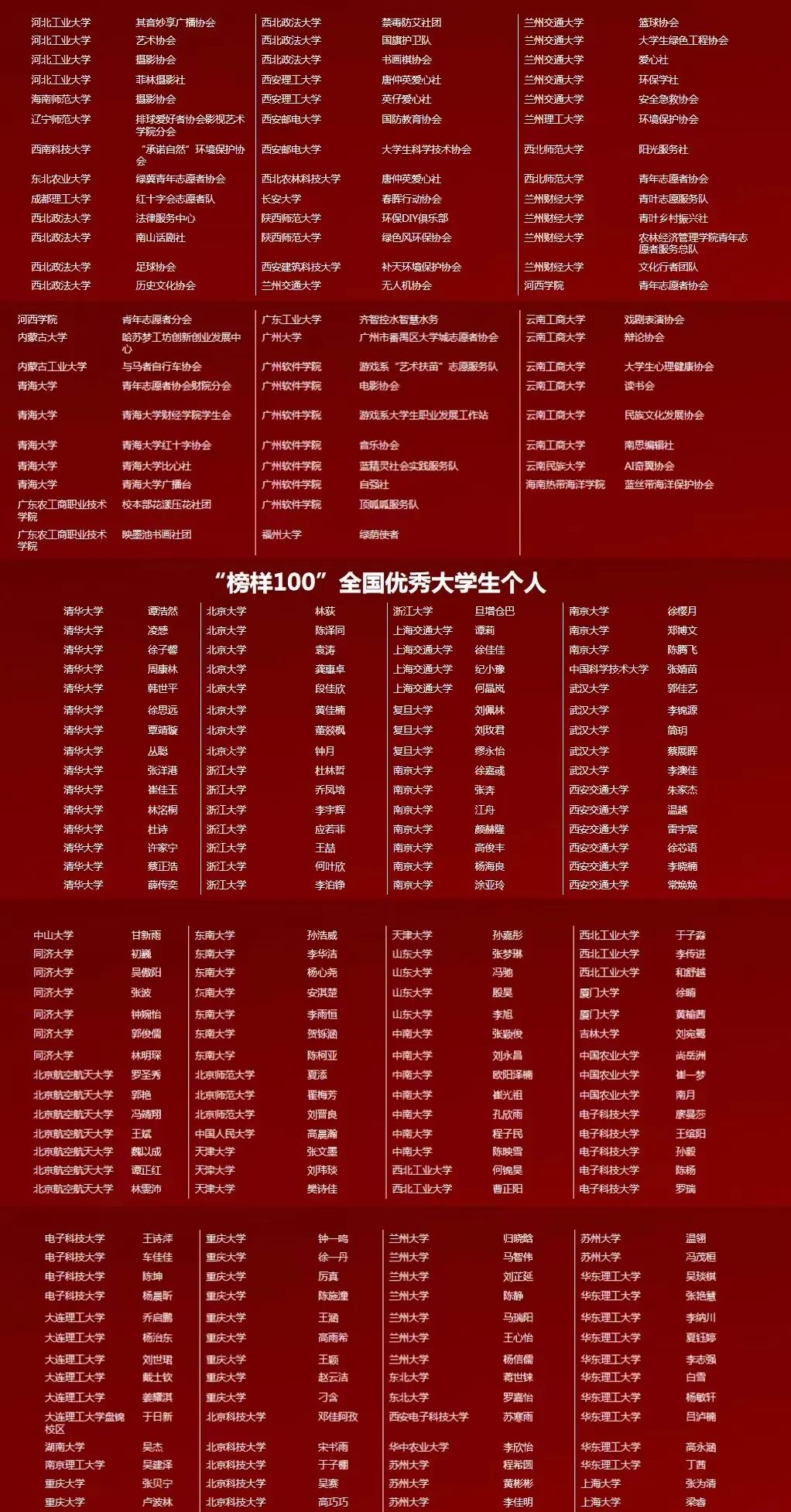 大学生艺术团入围“榜样100”全国优秀大学生社团,李婕、李晓菲获全国优秀大学生个人。