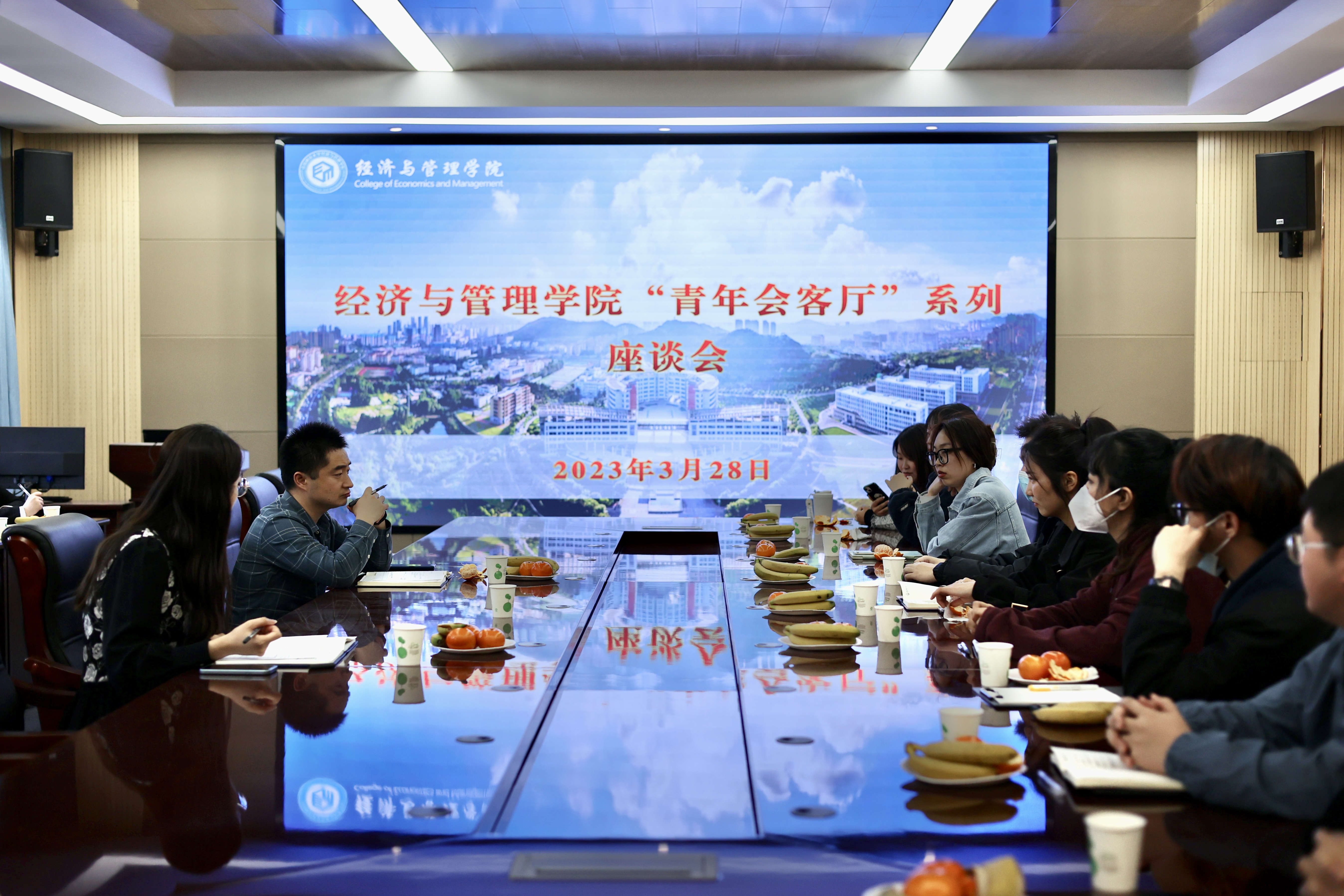 于313会议室举办第一期“青年会客厅”座谈会。德州扑克俱乐部