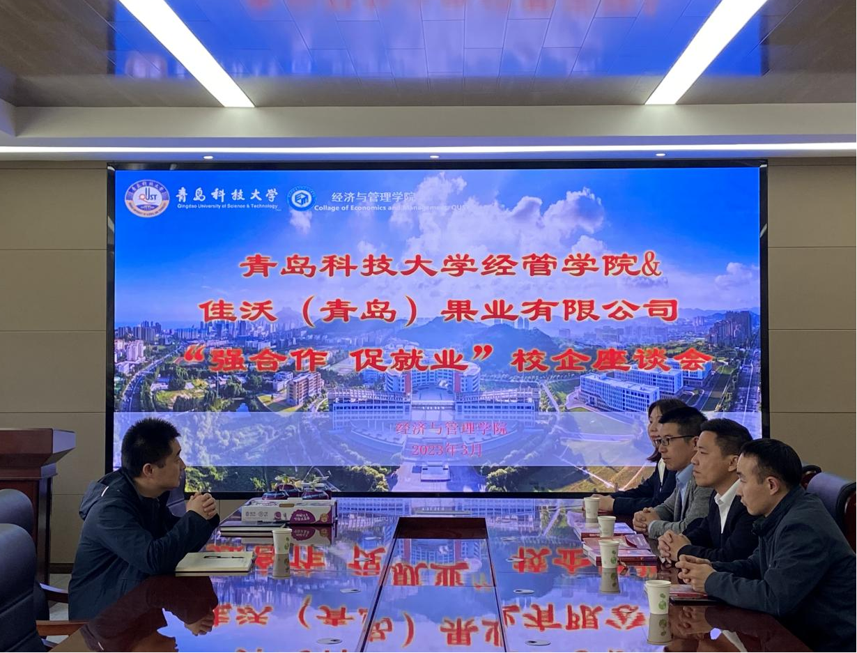 于德扑楼313会议室举办“强合作 促就业”校企座谈会,佳沃(青岛)果业有限公司华北大区人力资源经理客纪维、山东区域经理杨闯一行4人来校交流,探讨人才招聘、实习实践等相关事宜。德州扑克俱乐部