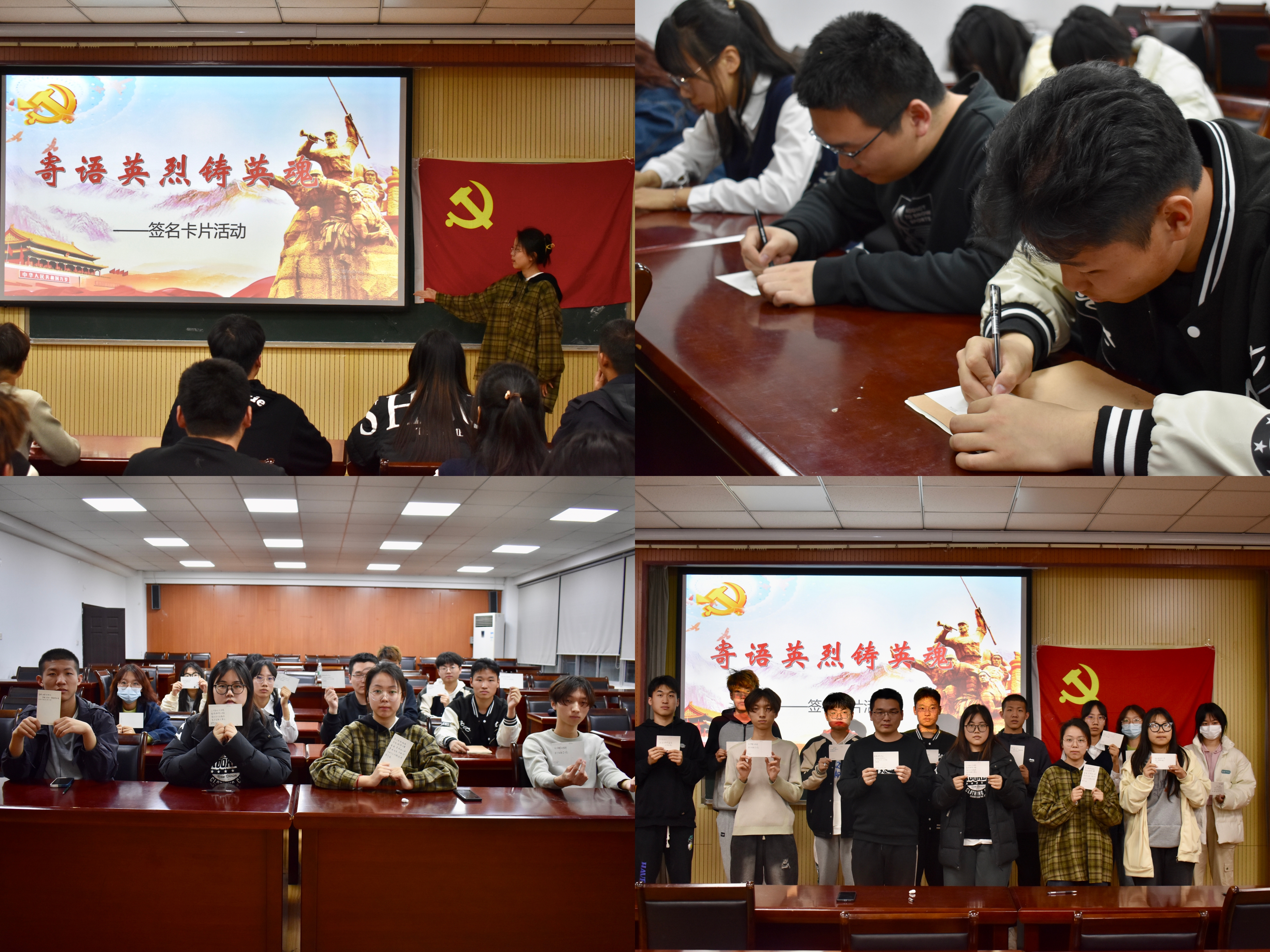 举办“寄语英烈铸英魂”卡片寄语活动,引导学子以笔墨为载体,共述爱国之志,共祭英烈之魂。一句句真诚质朴的语言,一份份真挚热烈的情感,书写出的不仅是文案,更是不能忘却的纪念。德扑学子以笔寄情,以墨言志,进一步表达了我辈青年对革命先烈的缅怀与崇敬,彰显了德扑学子坚定理想信念,勇担历史使命的勇气与力量。