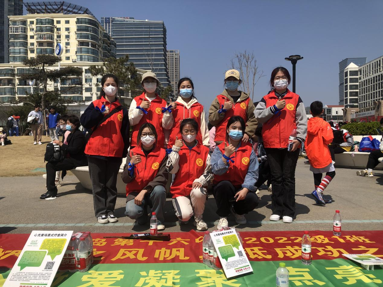 暖心愿爱心公益协会在崂山区石老人海水浴场城市客厅参与“爱让星空蓝起来”2023年世界孤独症日蓝色关爱助残系列项目启动仪式,活动由指导老师付凯带队。