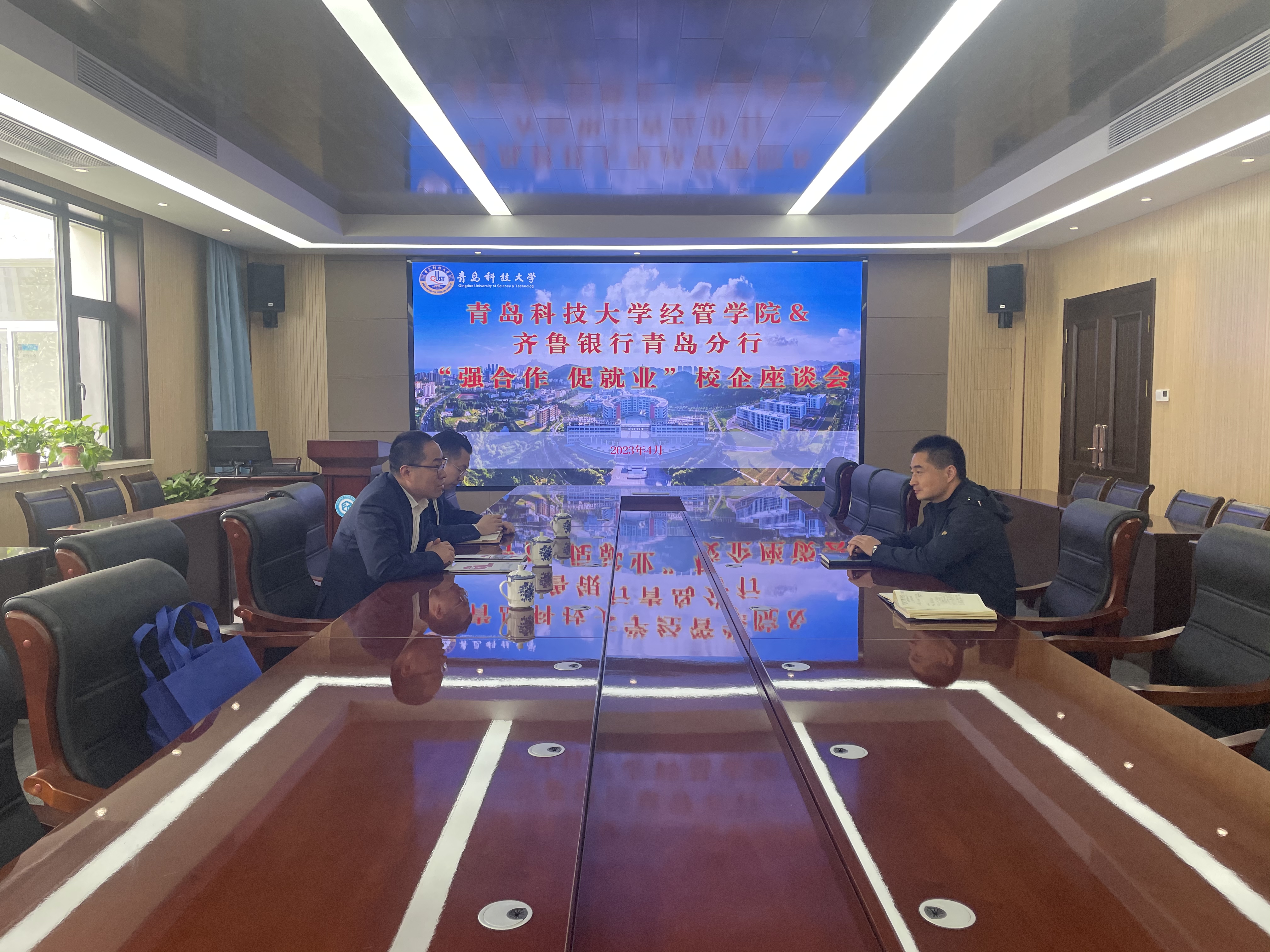 与齐鲁银行青岛分行于德扑楼313会议室举办“强合作 促就业”校企座谈会,齐鲁银行青岛分行办公室主任兼计财部总经理刘玉浩一行3人来校交流,探讨人才招聘、实习实践等相关事宜。德州扑克俱乐部