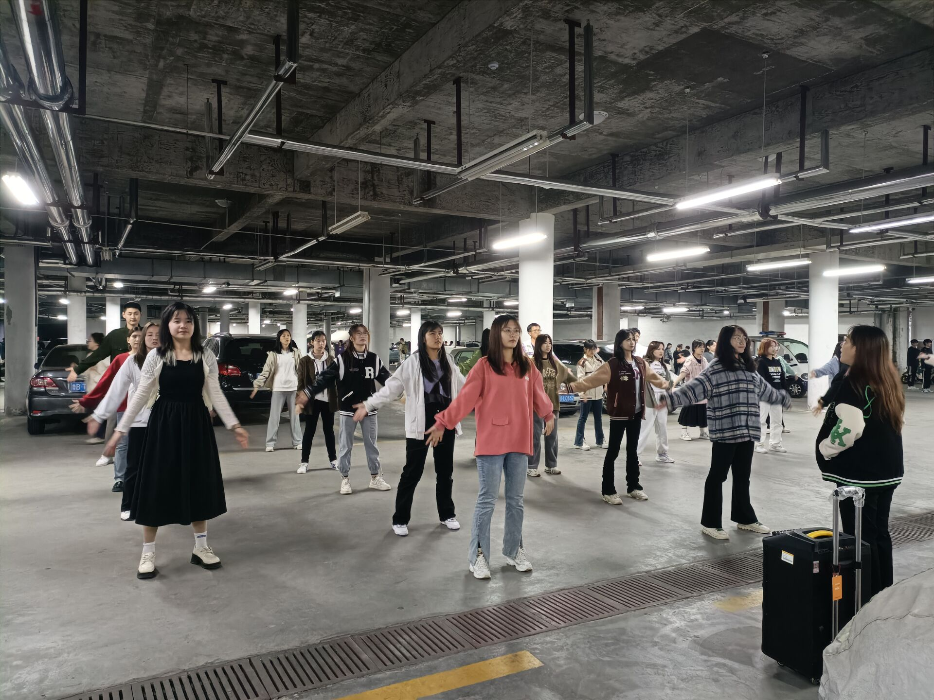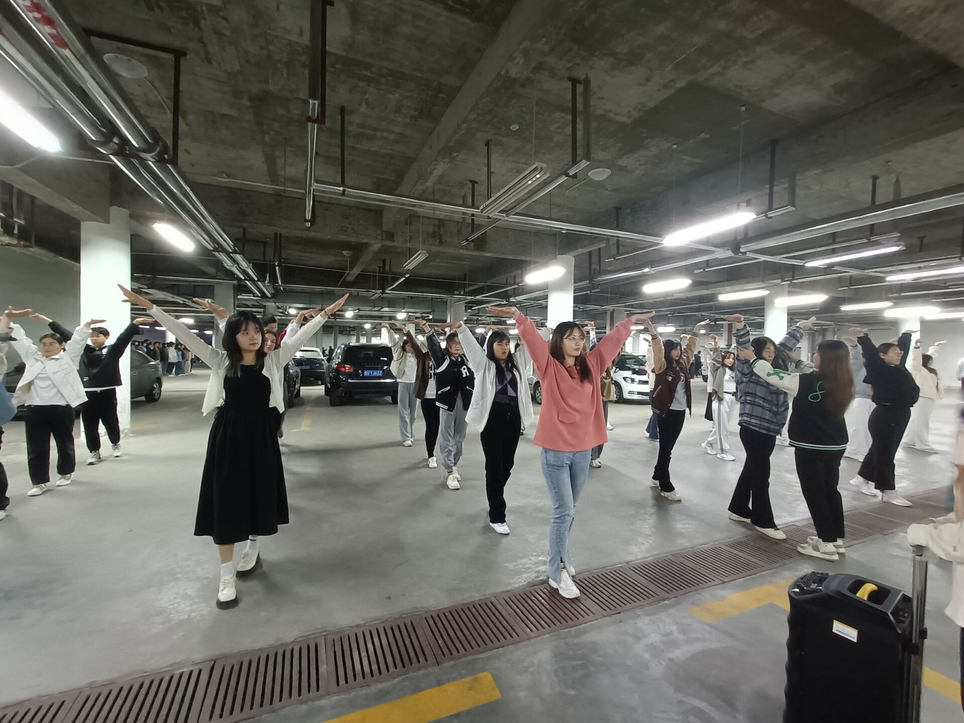 于地下车库开展第三届排舞联赛院级赛,目的是最终选拔出一批优秀的运动员参加校际联赛。