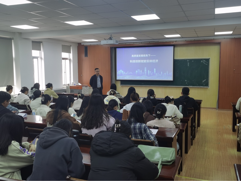 4月18日上午, “求思得”论坛:高质量发展视角下—科技创新赋能实体经济专题讲座在崂山校区德州扑克俱乐部
