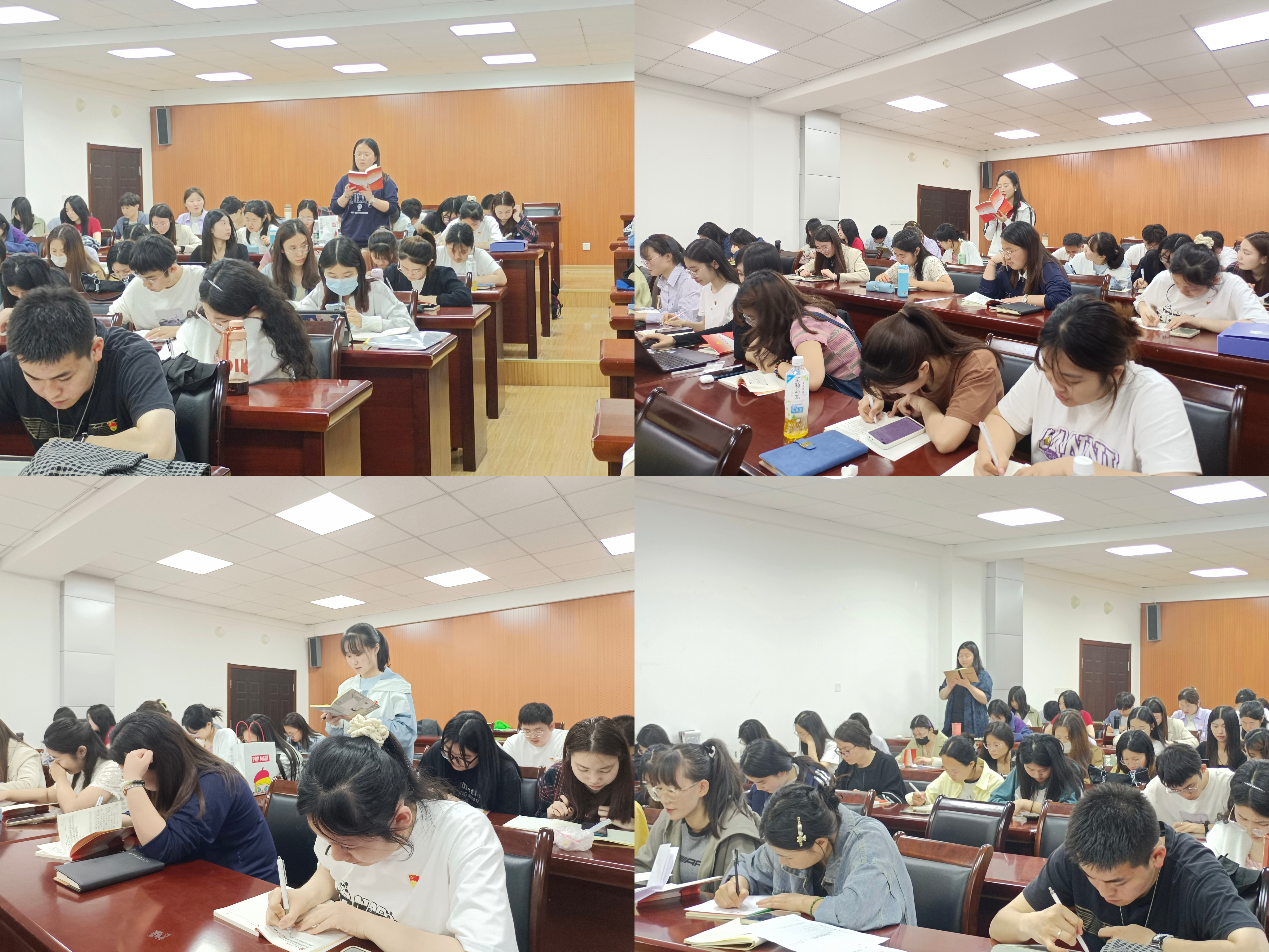 本科生第一、第二、第三党支部于德扑楼504室开展学习贯彻习近平新时代中国特色社会主义思想主题教育第一期理论学习,以读原著、学原文、悟原理的方式开展习近平总书记重要讲话精神专题学习。