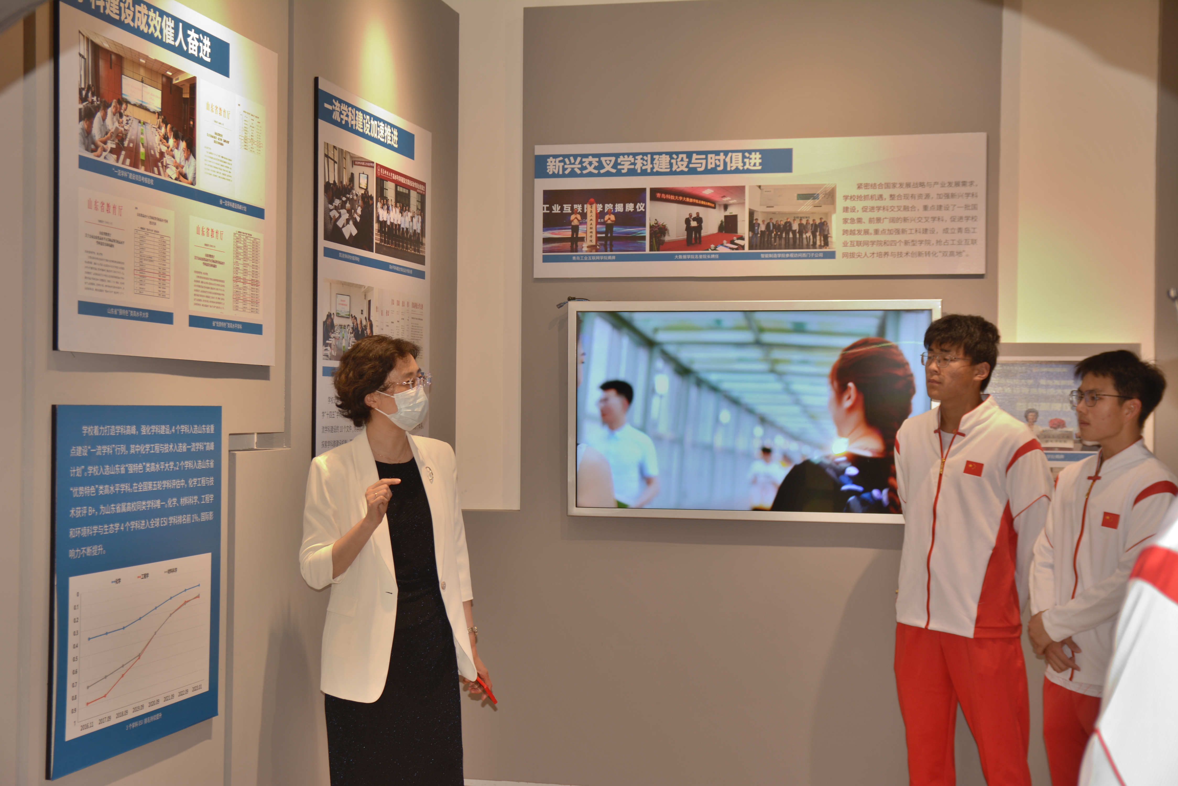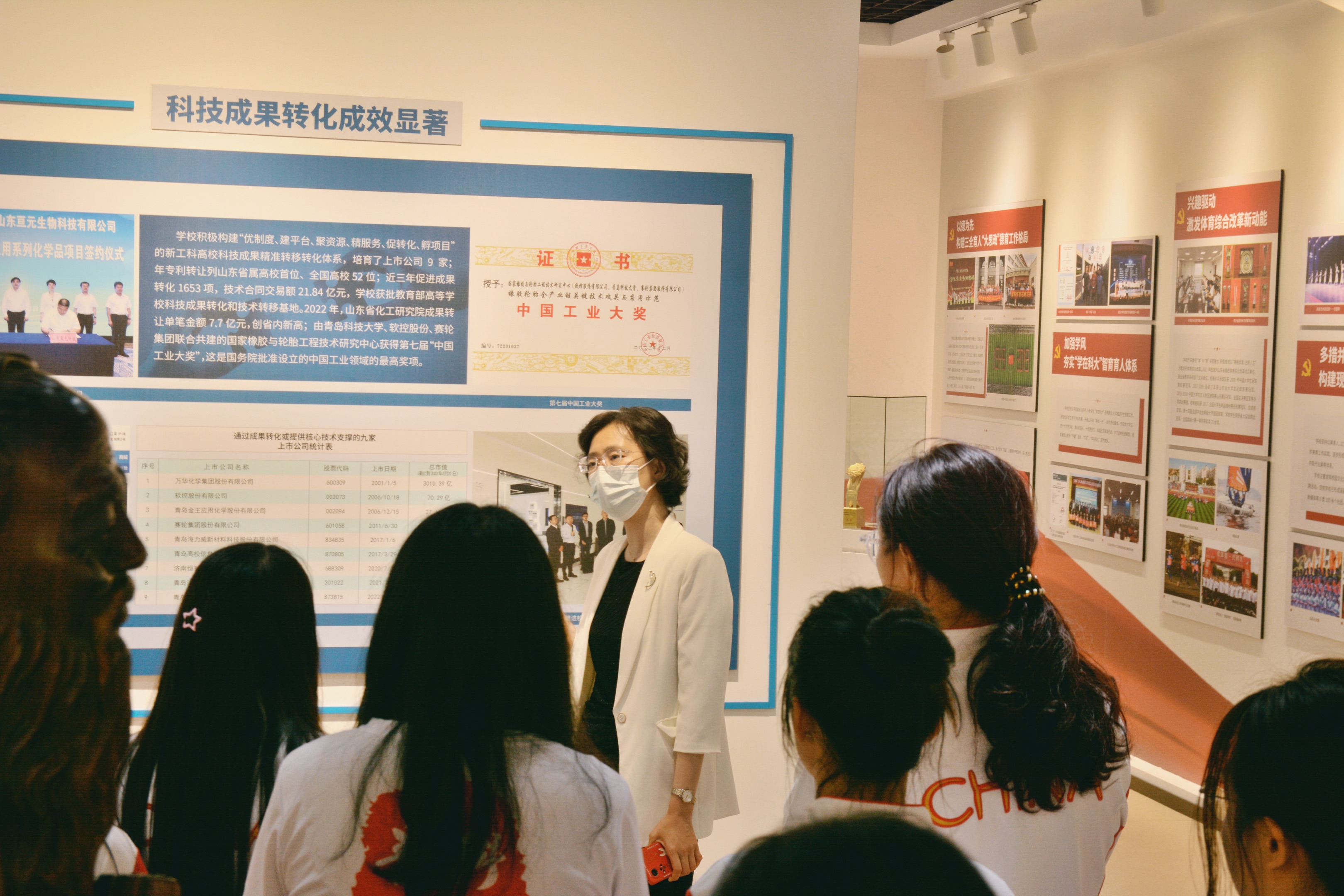 活动期间,王晓娜细致详尽地向同学们介绍了学校发展的历史沿革和七十余载沧桑变化,从学科建设、师资队伍、人才培养、科技创新、党建与思想政治工作等方面讲述了一代代青科大人在学校发展史上筚路蓝缕、艰苦创业、躬耕不辍的奋斗故事。通过讲解,同学们深切感受到了积淀深厚的科大精神、橡胶品格,被学校历任领导、专家学者和知名校友作出的贡献深深感动,作为青科大人的自豪感和使命感油然而生。参观结束后,同学们就学习、实习、就业、生活等方面提出了自己的疑问和困惑。王晓娜认真倾听并结合自身经验一一耐心解答,她勉励同学们珍惜当下、丰富自我;勇于创新、躬身实践,珍惜每一次学习机会,将自己的所学所悟与职业生涯相结合,通过自己的行动来实现理想追求。