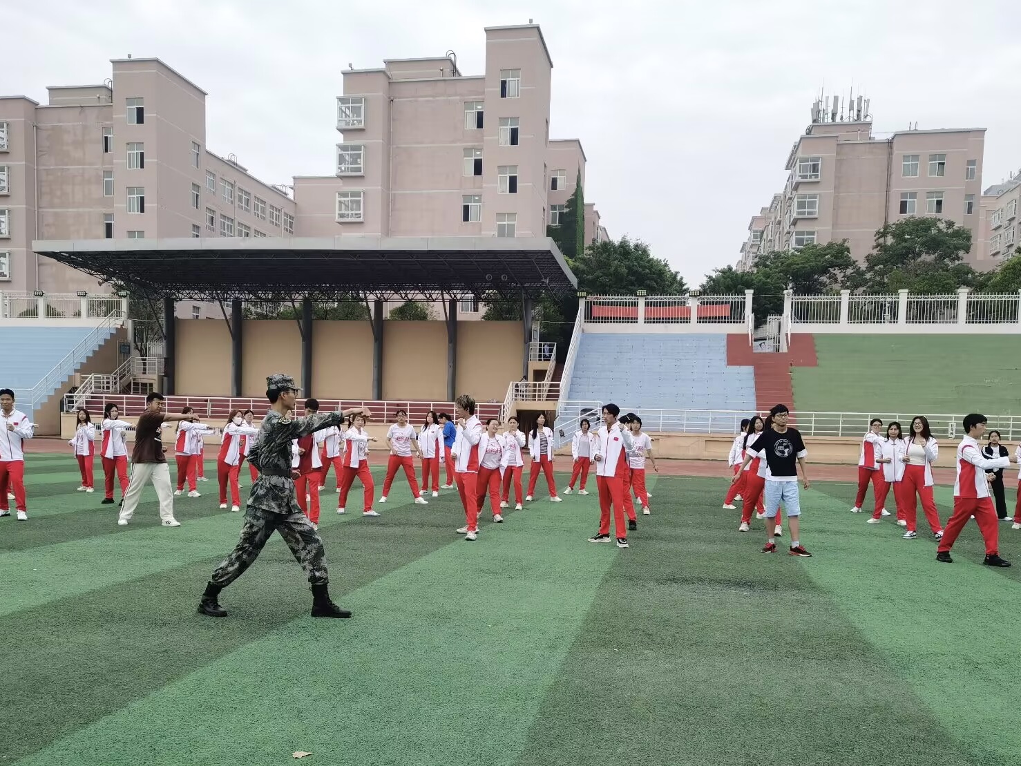 每日活动内容丰富,形式多样,涵盖晨跑、军体拳、趣味活动、篮球、足球等多项运动项目,积极为同学们搭建更多强健体魄的运动平台,同学们的出勤率达90%。活动充分满足同学们的兴趣爱好,引领学生走下网络,走出宿舍,走向操场。活动内外交流,加强了团队合作意识,增进了师生的友谊。在教练的指导下,大家完成一系列军体拳动作,练习中穿插的趣味小游戏,不但增加了活动的趣味性,还让大家在锻炼体能的同时,更感受到体育的快乐。