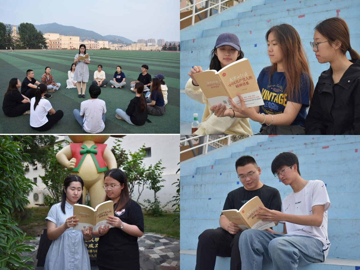全体同学围坐操场共学《中国共产党人的精神谱系》,选取经典章节进行现场诵读,围绕中国共产党人精神谱系的“价值所在”“血脉承继”“丰富内涵”“传承弘扬”四个层面,以极富感染力的表达深悟中国共产党百年来的精神史诗,进一步引导广大青年在精神谱系的学习中赓续红色血脉、汲取磅礴伟力。