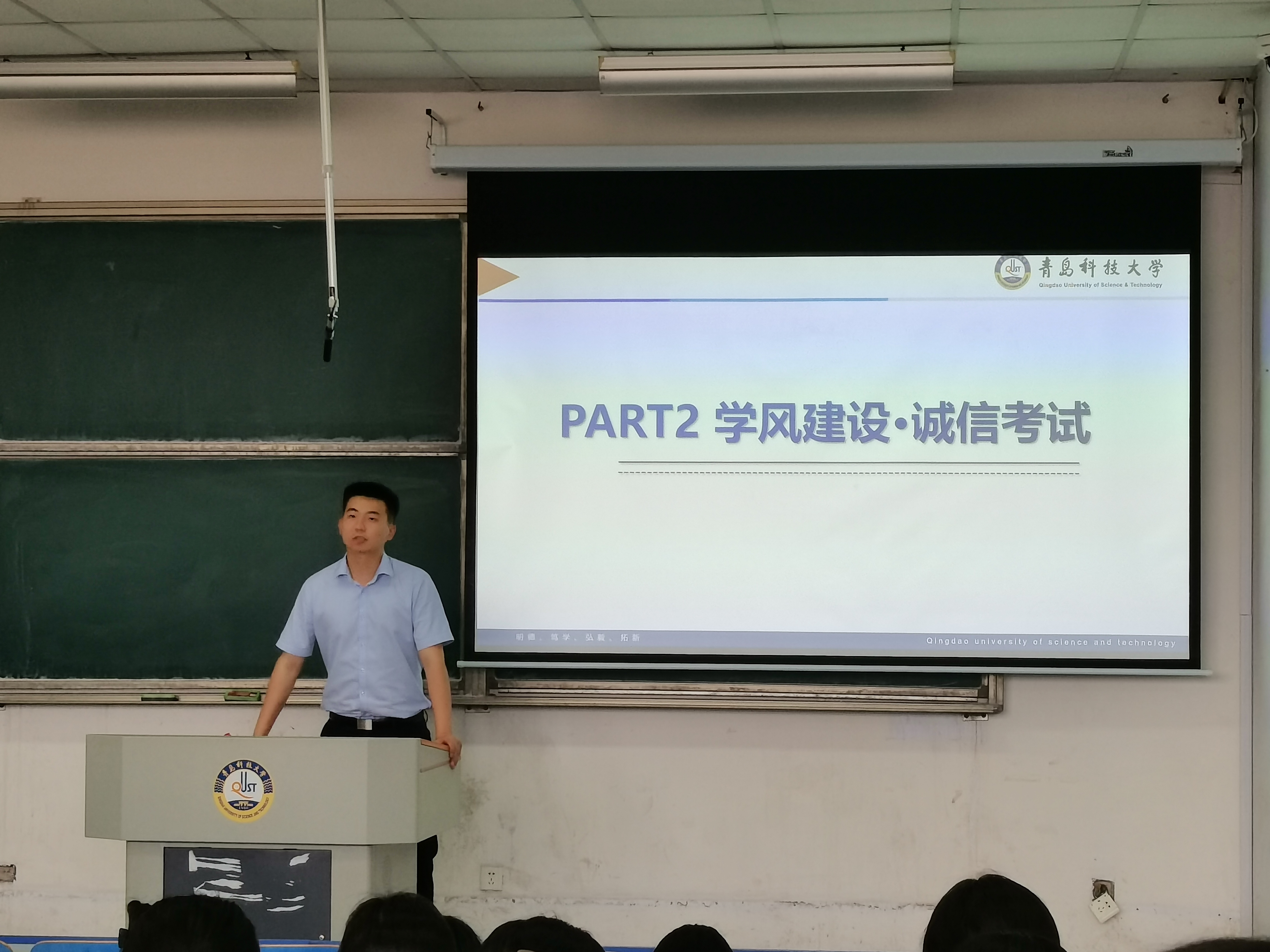 期末考试将近,为全面贯彻落实学校考风考纪的要求,形成良好的诚信之风,端正同学考试态度,袁绍正老师带领全体学生学习关于考试纪律的校规校纪和法律法规,并向同学们提出三点建议:一是要利用好期末复习时间,做好考前复习和准备,积极备考,以良好的心态参加期末考试;二是端正考试的态度,杜绝考试作弊的现象,形成良好的诚信之风;三是在诚信考试的大前提下,树立优良的学风、班风、院风、校风。
