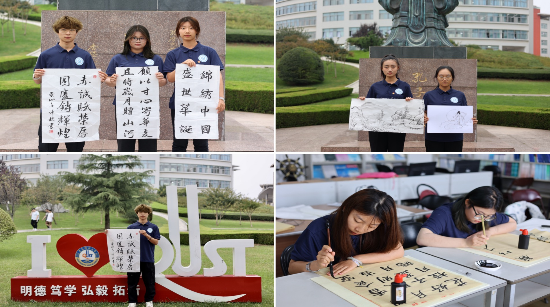 举办“情满中秋,礼赞国庆”书法活动,学生们以书言志,歌颂祖国。活动中,德扑学子以弘扬时代主旋律为导向、以饱满的创作热情、以丹青笔墨的艺术形式、以多元素的创作风格,当场创作书法作品。一幅幅作品尽显真挚的爱国情怀和积极向上的精神风貌,以书言志,以画传情,表现了爱党、爱国的真情实感。