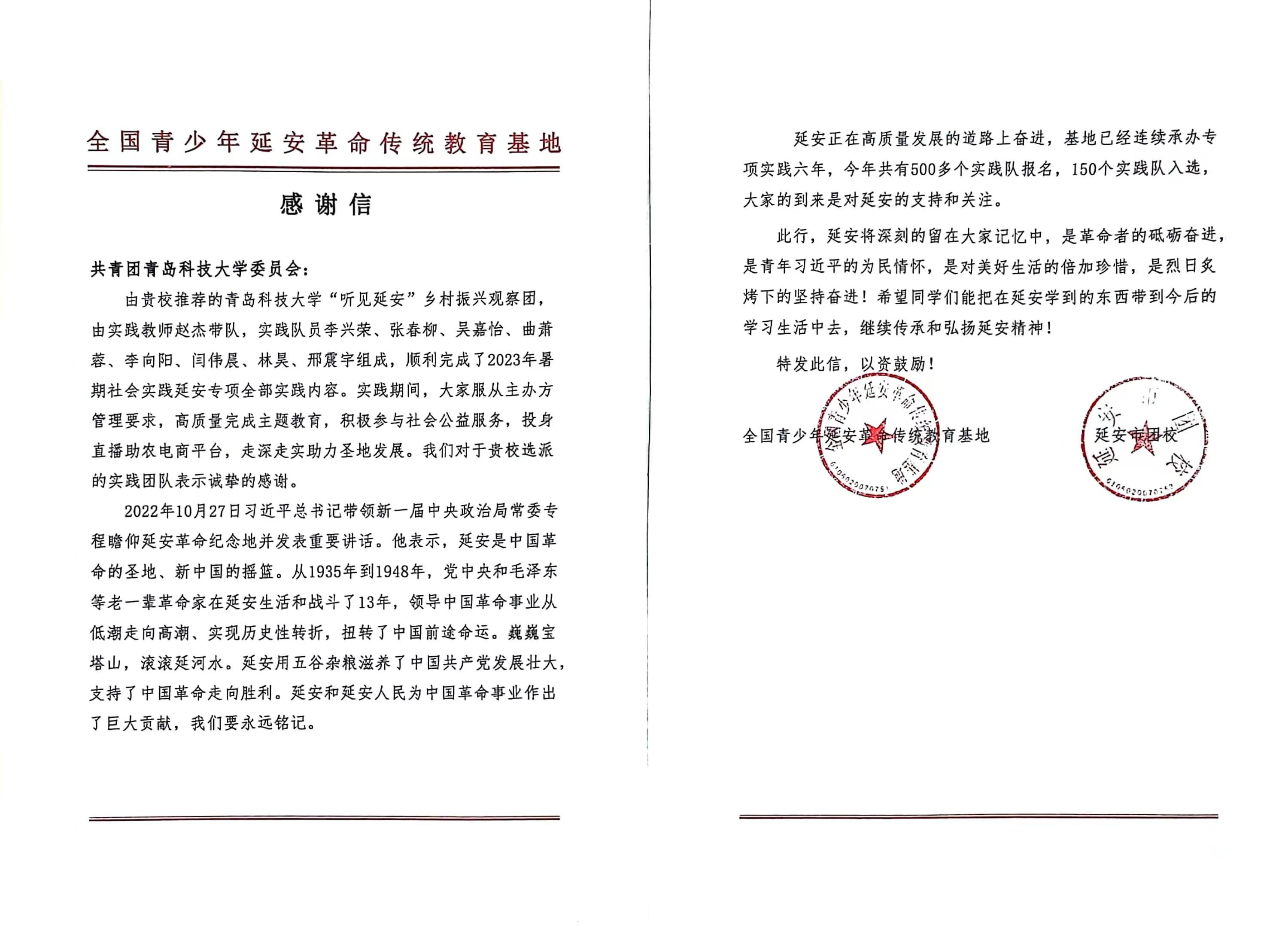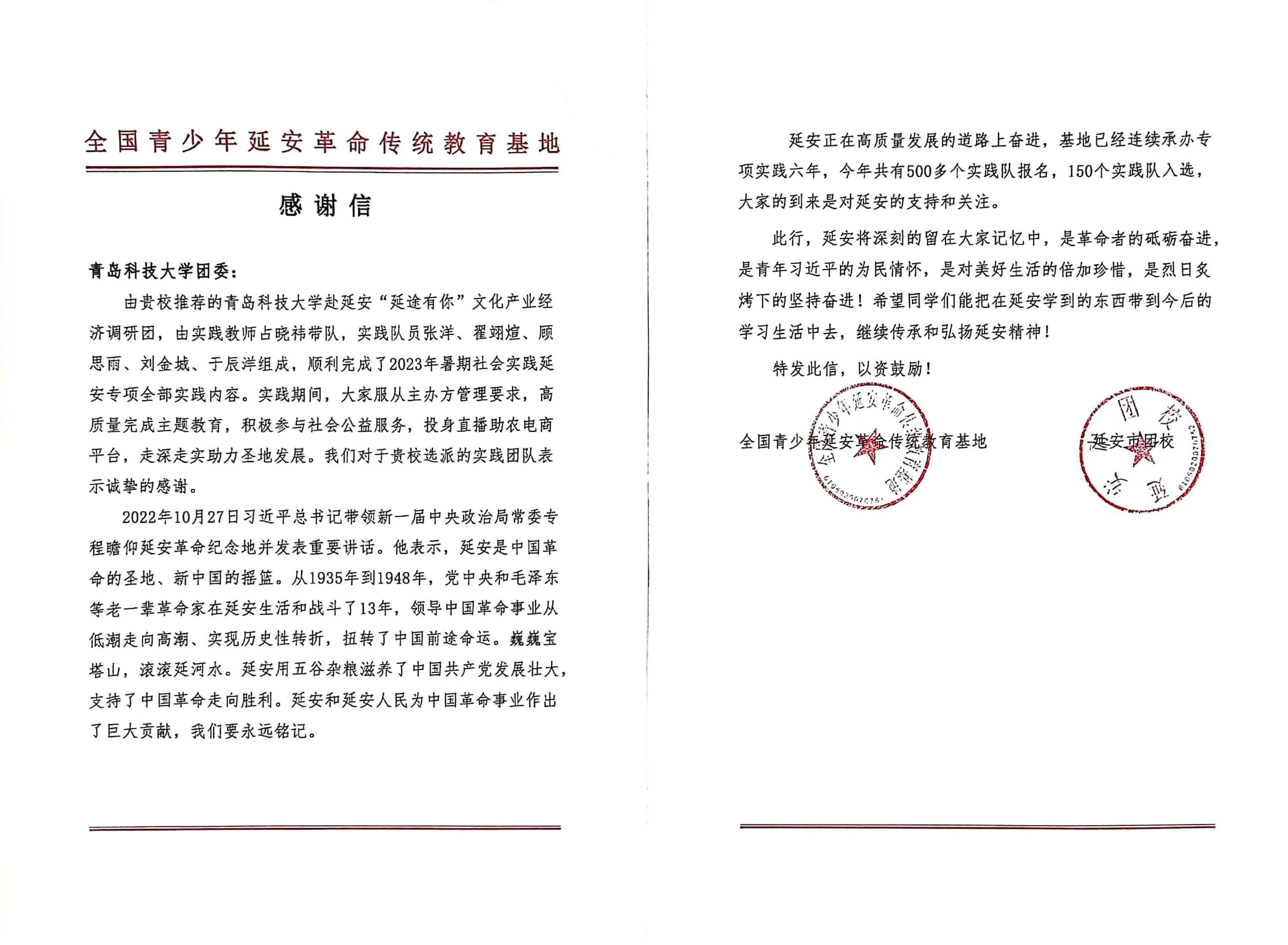 实践团队认真完成实践内容,结合专业优势多途径助力延安高质量发展表示感谢。