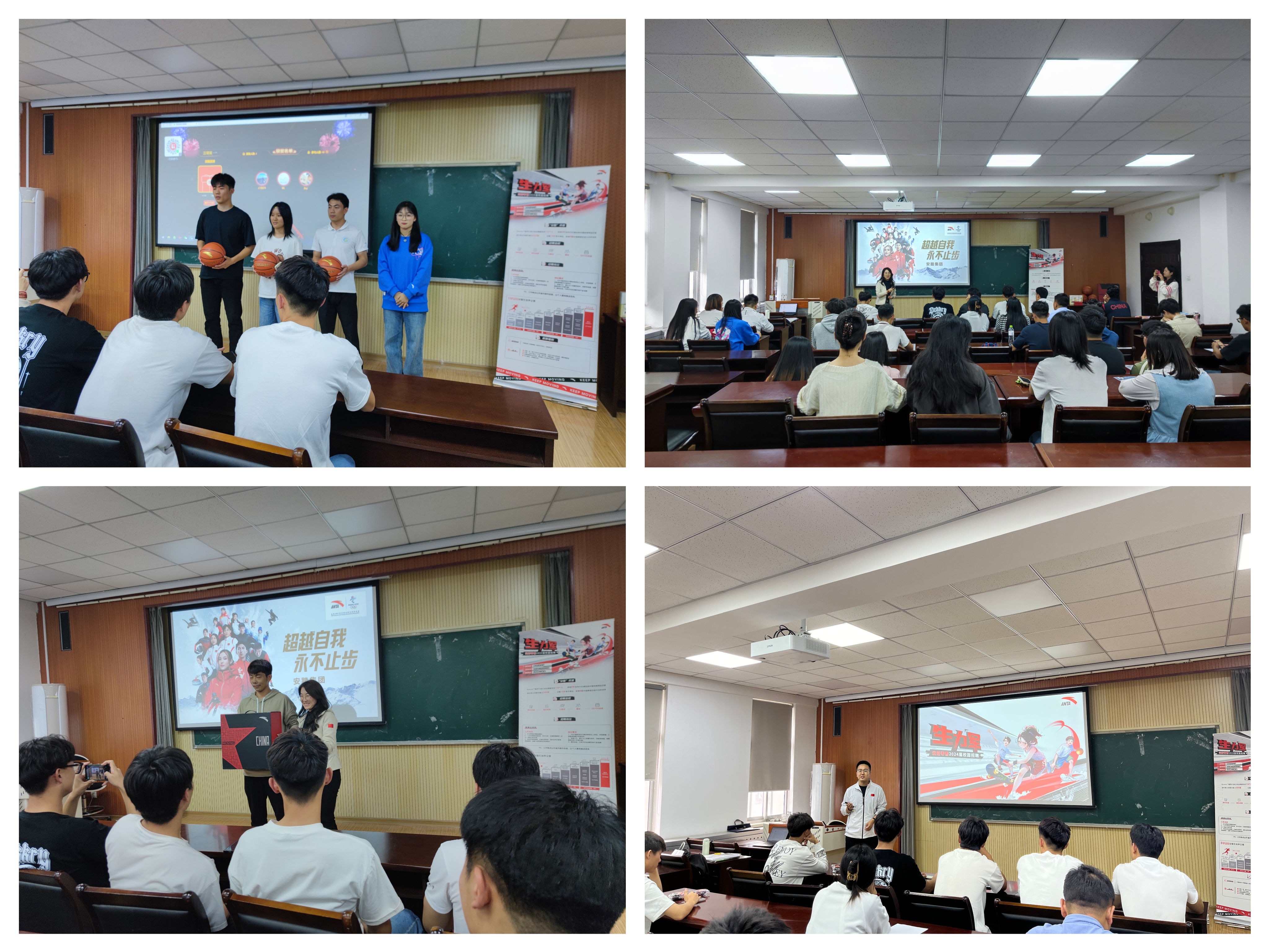 宣讲会现场气氛活跃,人力资源部经理通过视频宣传、PPT展示、提问送礼环节,以及面对面交流的方式,详细介绍了安踏的招聘岗位、培育发展成果、管培生兴趣培训班、薪资待遇、员工福利等,让同学们更加深入地了解安踏。
