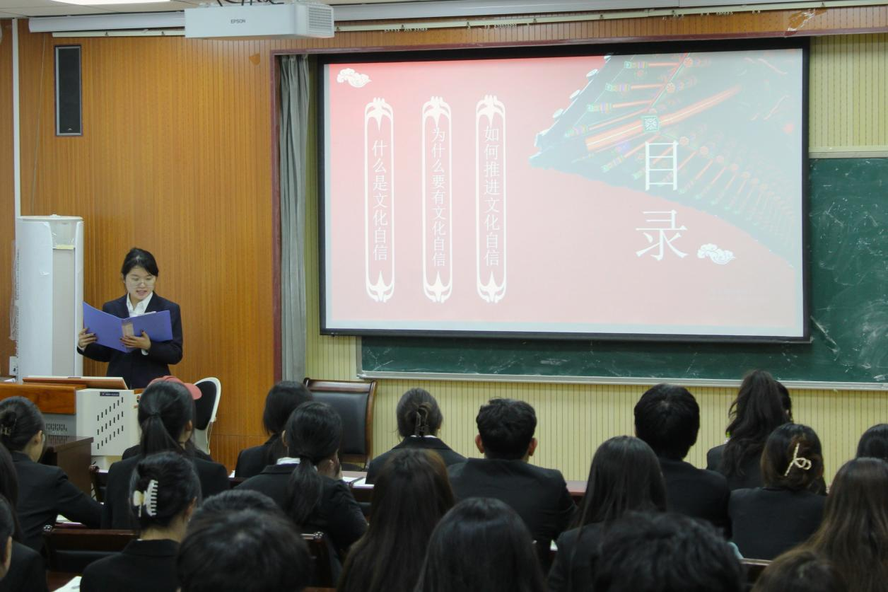 之后,润心宣讲团成员张一豪围绕文化自信,分别从”是什么、为什么、怎样做”三方面,为同学们生动而细致地讲述作为新时代的青年学子,我们应该如何坚定文化自信,讲好中国故事。