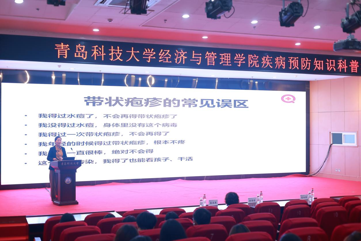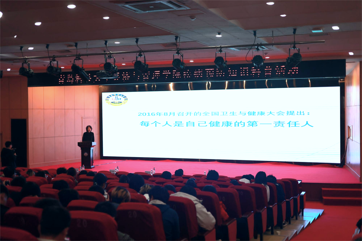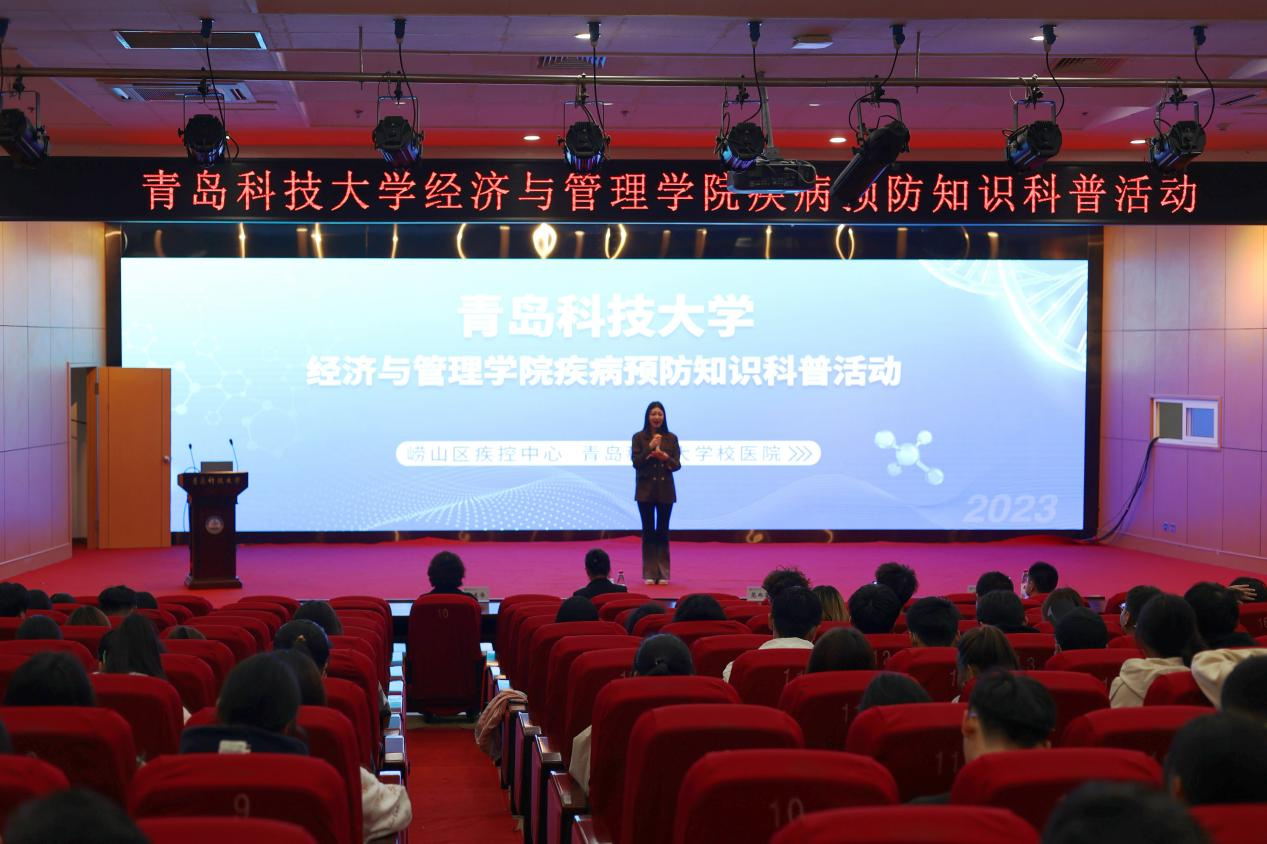 于第三报告厅组织开展学生健康知识讲座。崂山区疾控中心免疫规划科科长李雪丹、后勤管理处正处级组织员兼校医院院长范而军、校医院副院长高术华、德州扑克俱乐部