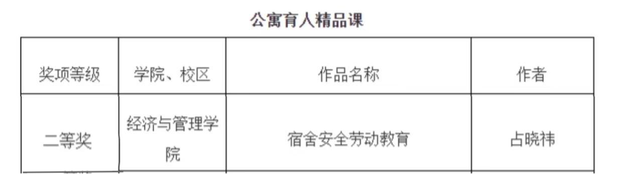 获评一站式”学生社区建设成果典型案例、公寓育人精品课二等奖、公寓文化征文活动三等奖、优秀组织奖。