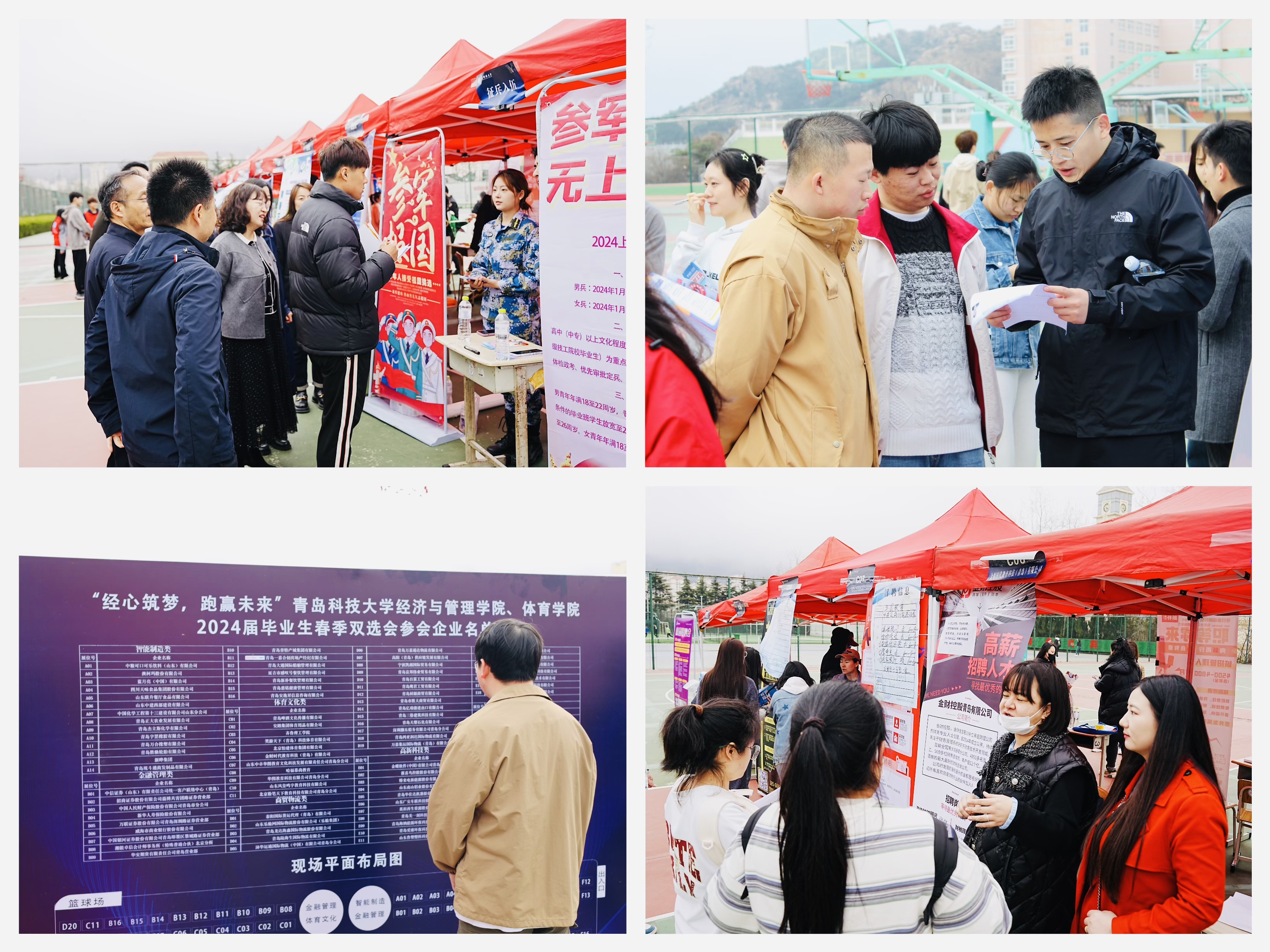 在崂山校区篮球场举办“经心筑梦,跑赢未来”2024届毕业生春季双选会。学生工作处处长王丽、学生工作处副处长兼就业指导中心主任徐华、学生工作处副处长张超亲临现场走访指导,与多家用人单位进行深入交流,鼓励到场求职的学生要自信自强、积极就业。德州扑克俱乐部
