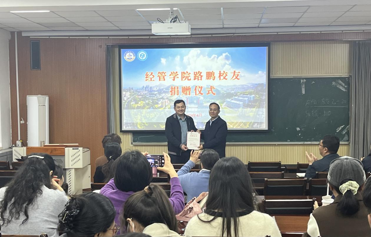 4月22日下午,2003级财务管理专业校友路鹏先生向我院慷慨捐赠用友财务管理实训软件一套。这一举措旨在回馈母校,提升财务管理专业的教学质量,为在校学生提供更多实践机会。捐赠仪式在419会议室举行,李勋来书记为路鹏校友颁发了捐赠证书,院长吕承超表示路鹏先生的捐赠是对德州扑克俱乐部