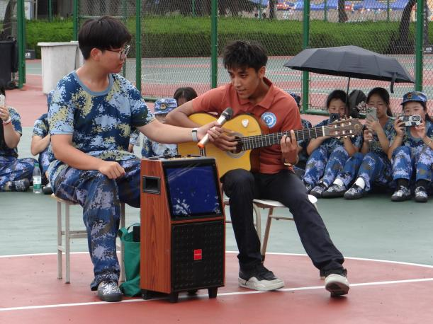 共着迷彩无惧骄阳,载歌载舞青春力量。各班级充分发挥专业优势,结合自身独特的学科特色,在操场举行中秋文艺汇演。同学们通过合唱《强军战歌》、表演家乡舞蹈、同玩中秋游戏、分享月饼等方式共度中秋佳节,同时为新中国成立75周年送祝福。