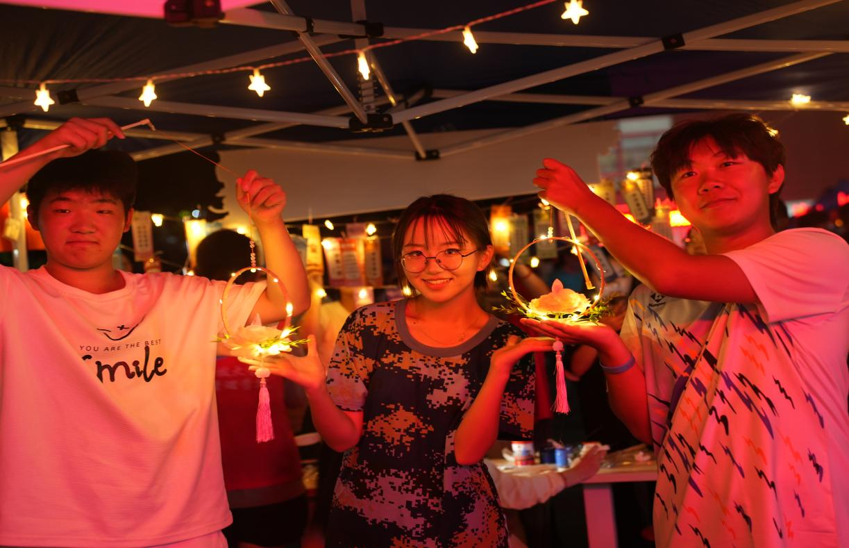 积极响应学校号召,在弘毅广场举行游园会。党员先锋组织学生猜灯谜、接飞花,在浓厚诗词文化的氛围共赏月圆。学生骨干与新生一起制作手工灯笼、绘制团扇,在体验传统手工艺魅力的同时,传递对亲朋好友的思念与美好祝愿。