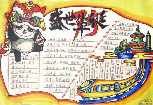开启线上“征文”活动,以灵动文字尽展青年风姿;进行绘画作品征集,借画卷描绘祖国锦绣山河,呈上青年“答卷”;组织“山河披锦绣,盛世写华章”摄影作品竞赛,用镜头捕捉国庆盛景,尽显万家灯火、阖家团圆之象;开展“我与国旗合个影”拍照打卡,以国庆旅游打卡拍照为契机,让红色教育融入青年学子日常学习之中;组织“时代新人说”微视频拍摄活动,青年学子以录制视频的方式展现祖国发展繁荣盛貌,以实际行动书就青春华章。