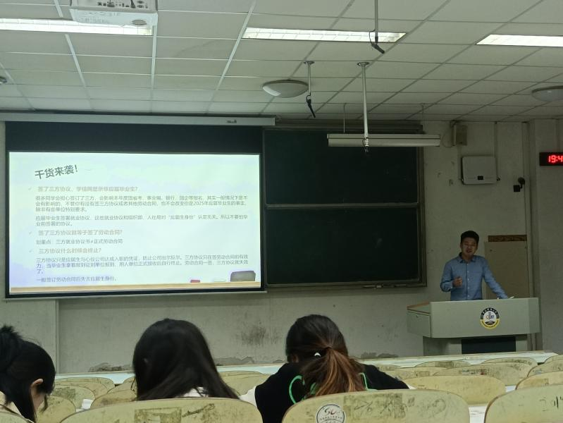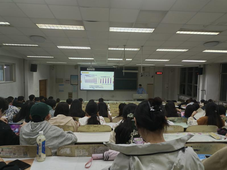 往年考研就业情况、分析研判了2025届毕业生考研就业形势。他指出,全体毕业生应该充分认清当前形势、明确发展方向,坚定考研就业信心,把握机会,早准备、早谋划、早行动,更加平稳地应对就业浪潮。接着,王嵩老师为同学们普及考研、考公、考编、工作、创业等常识,理清时间节点,讲解细微事宜,为同学们纾困解难。最后重点指出考研就业需要面对的几个问题,并结合具体事例加以分析,为同学们明确方向。