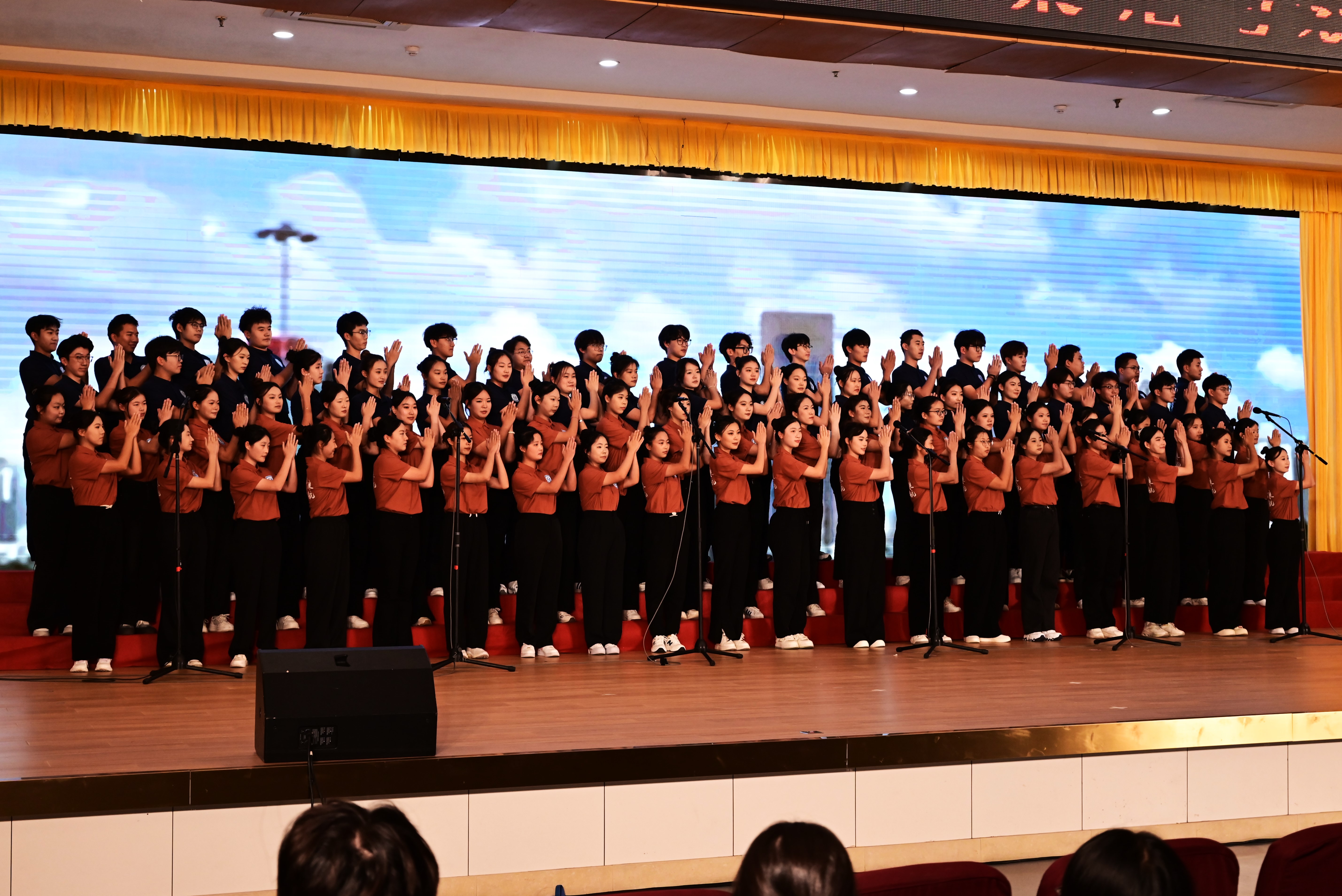 表演过程中,同学们精神抖擞、情绪饱满,展现德扑人风华正茂之姿,彰显了师生意气风发、同心协力的浓郁氛围,歌声琴音交相辉映,绘就一幅和谐共鸣之卷。