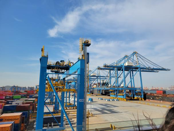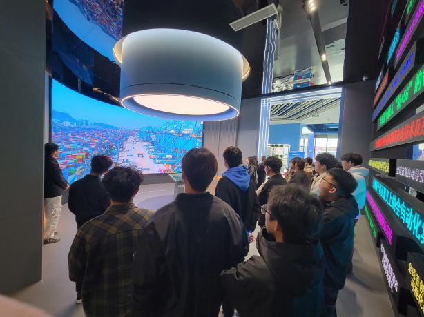 紧接着走访团在青岛港全自动化集装箱码头进行参观,在现场观摩了双小车岸桥、高速轨道吊、自动导引车等先进物流设备的作业现场,无人化的集装箱码头作业使学生们深受震撼。此外,在中粮可口可乐饮料(山东)有限公司,走访团队也进行了深入的交流与探讨,解说员对中粮可口可乐饮料(山东)有限公司的企业现况进行了细致剖析,包括市场份额、业务范围、技术优势、人才队伍建设等方面,同时带领师生团队们现场观摩了多条全自动化生产线,让在场师生对企业的具体情况有了更清晰的了解。