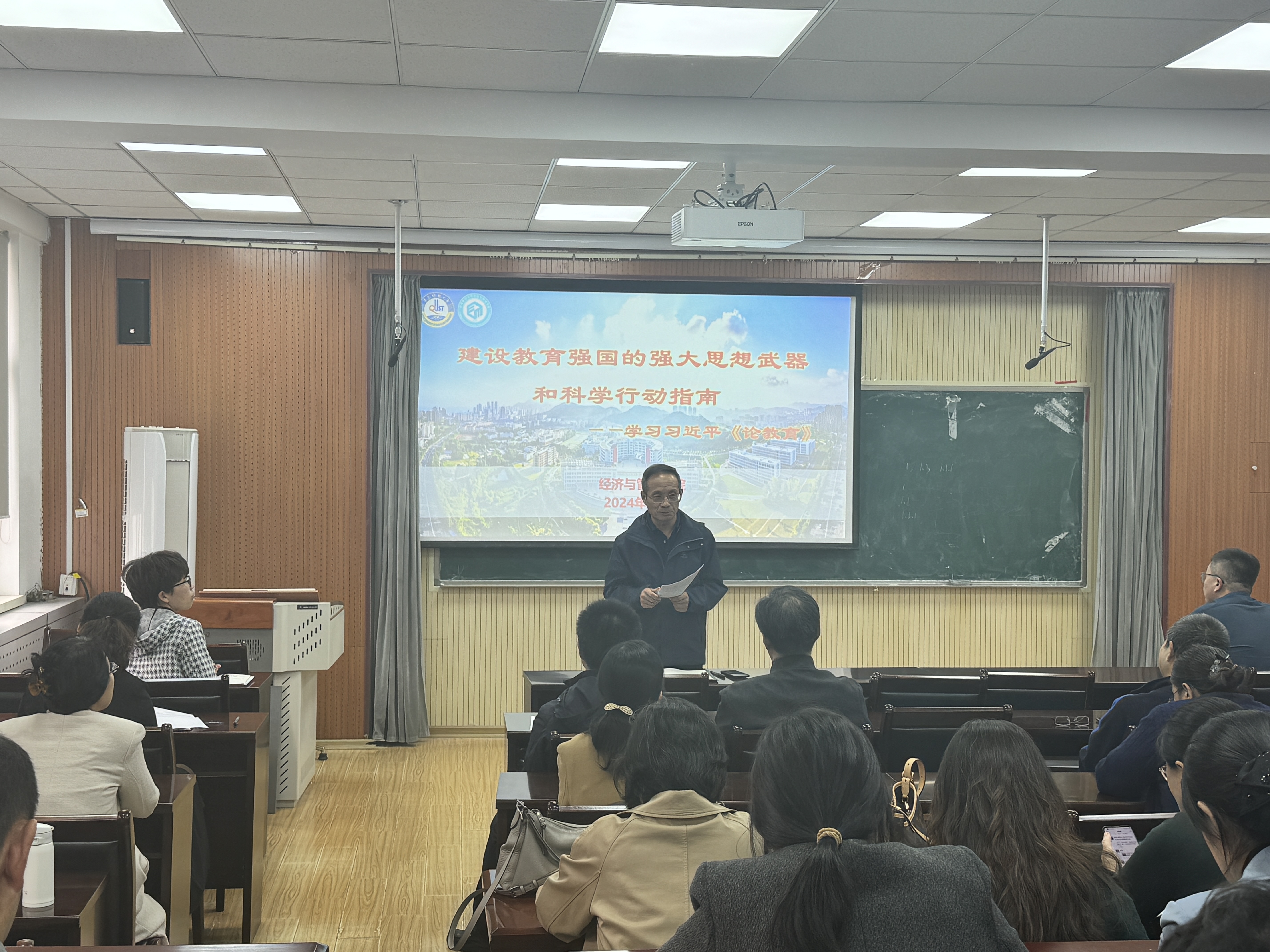 党委书记李勋来为全体教职工讲授《论教育》专题思政课。
