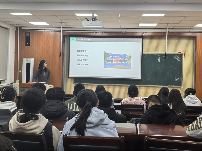 科创比赛的大致框架和方向。让同学们对即将开始的竞赛有了初步认识。紧接着,主讲嘉宾向同学们介绍参与科创竞赛的知识与意义,引导大家认识到此为锻炼个人能力、促进自身成长的有效途径。