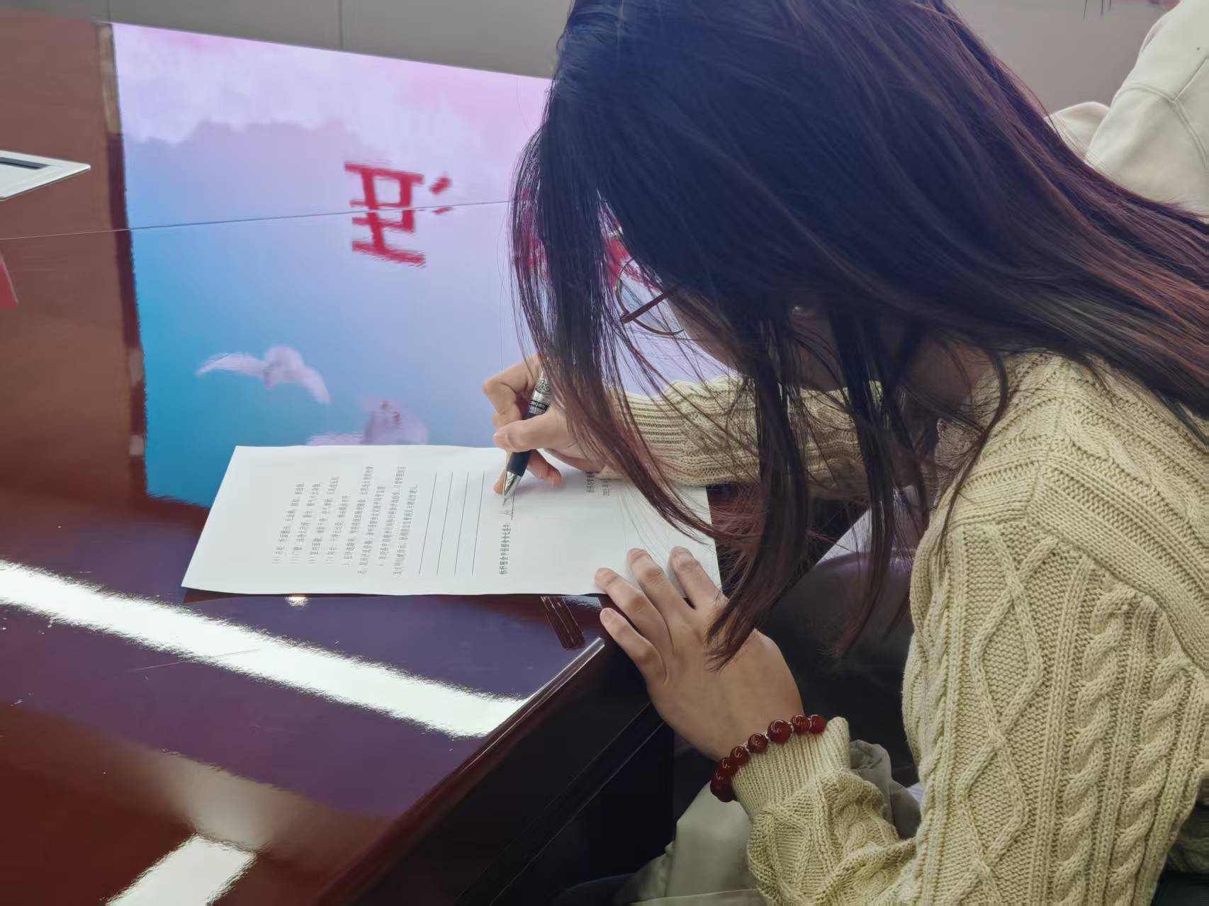 仪式最后,进入“经”治宿舍建设标杆责任书签字环节。武芳竹宣读了《“经”治宿舍评比活动责任书》,并分发给各申报宿舍舍长,各舍长在责任书上写下文明宿舍建设意见并签字。责任书明确了宿舍在卫生、安全、文化建设等方面的责任与目标以及评选的标准和规则,标志着德州扑克俱乐部