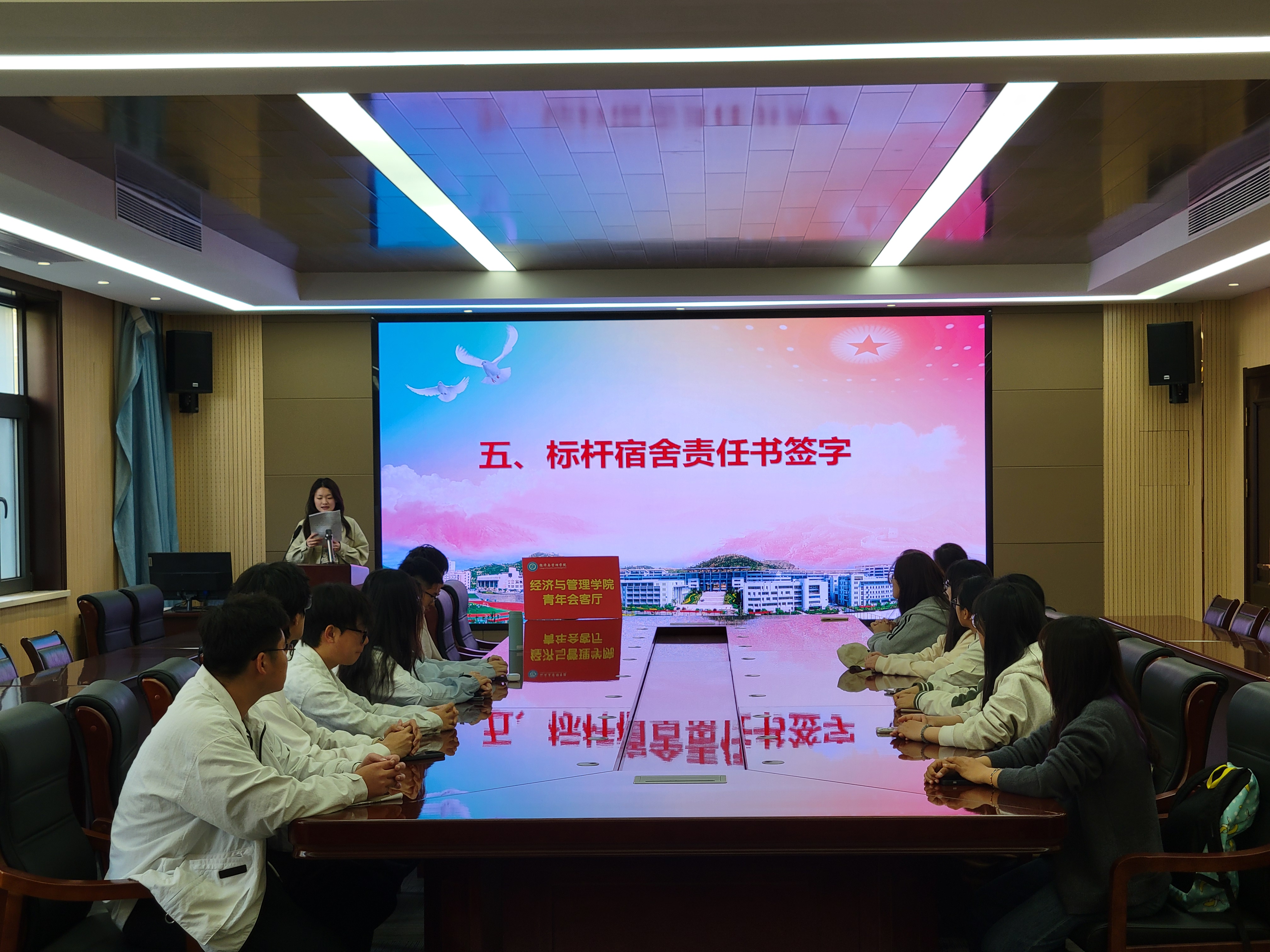 此次文明宿舍建设推进会暨“经”治宿舍责任书签约仪式依托青年会客厅“青年引领青年”交流互助平台,是对“1234N‘经’治宿舍”建设计划和学生成长“共同体”实施方案的有效实践,为德州扑克俱乐部
