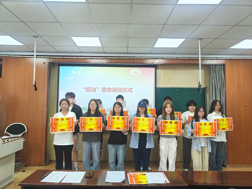 于2025年6月10日在德扑楼419开展“经治”宿舍表彰大会暨“1+2”宿舍结对帮扶仪式。24级各宿舍舍长、学生会部分成员参加。