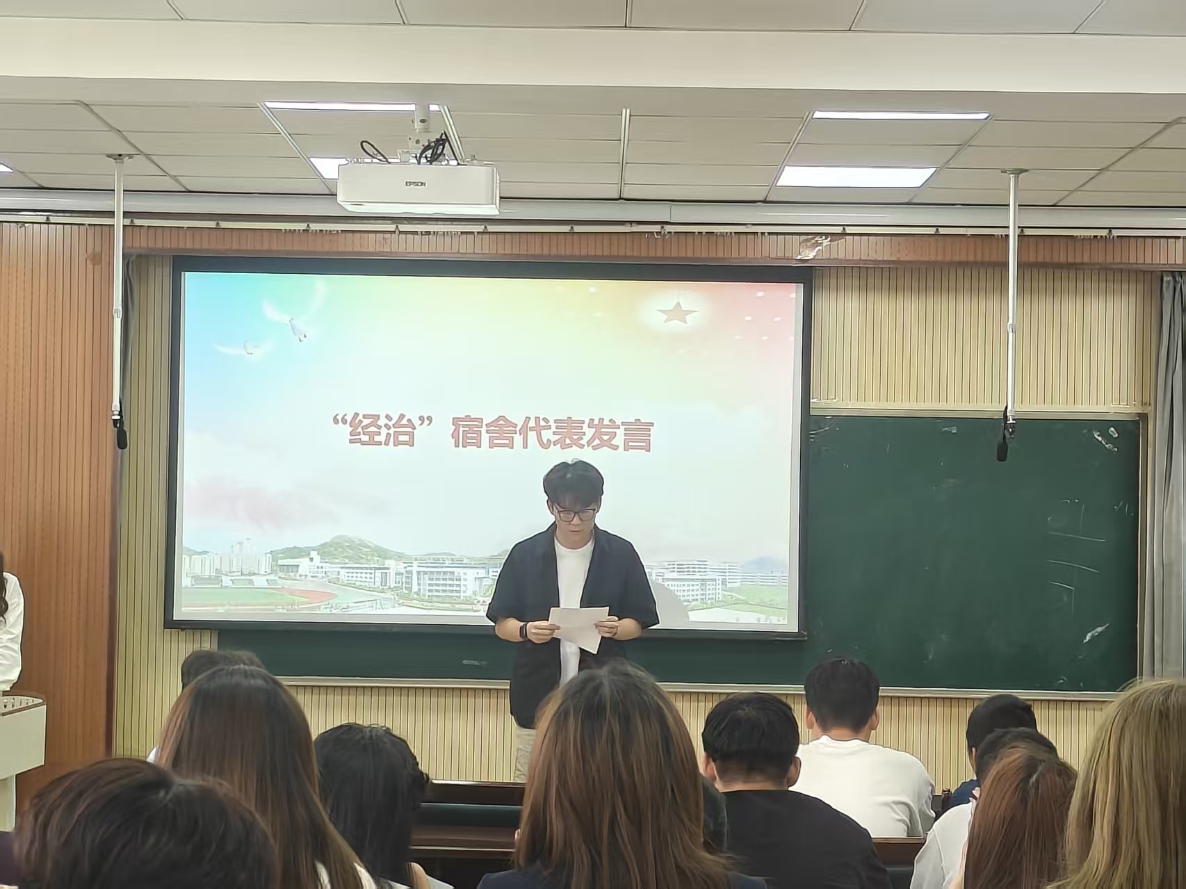“经治”宿舍代表进行发言,表达了对带动结对宿舍共同营造整洁有序的居住环境的热情与决心;结对宿舍代表表示将以标杆宿舍为榜样,不断提升宿舍建设水平,共同打造文明家园。