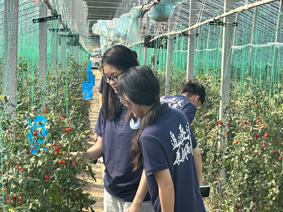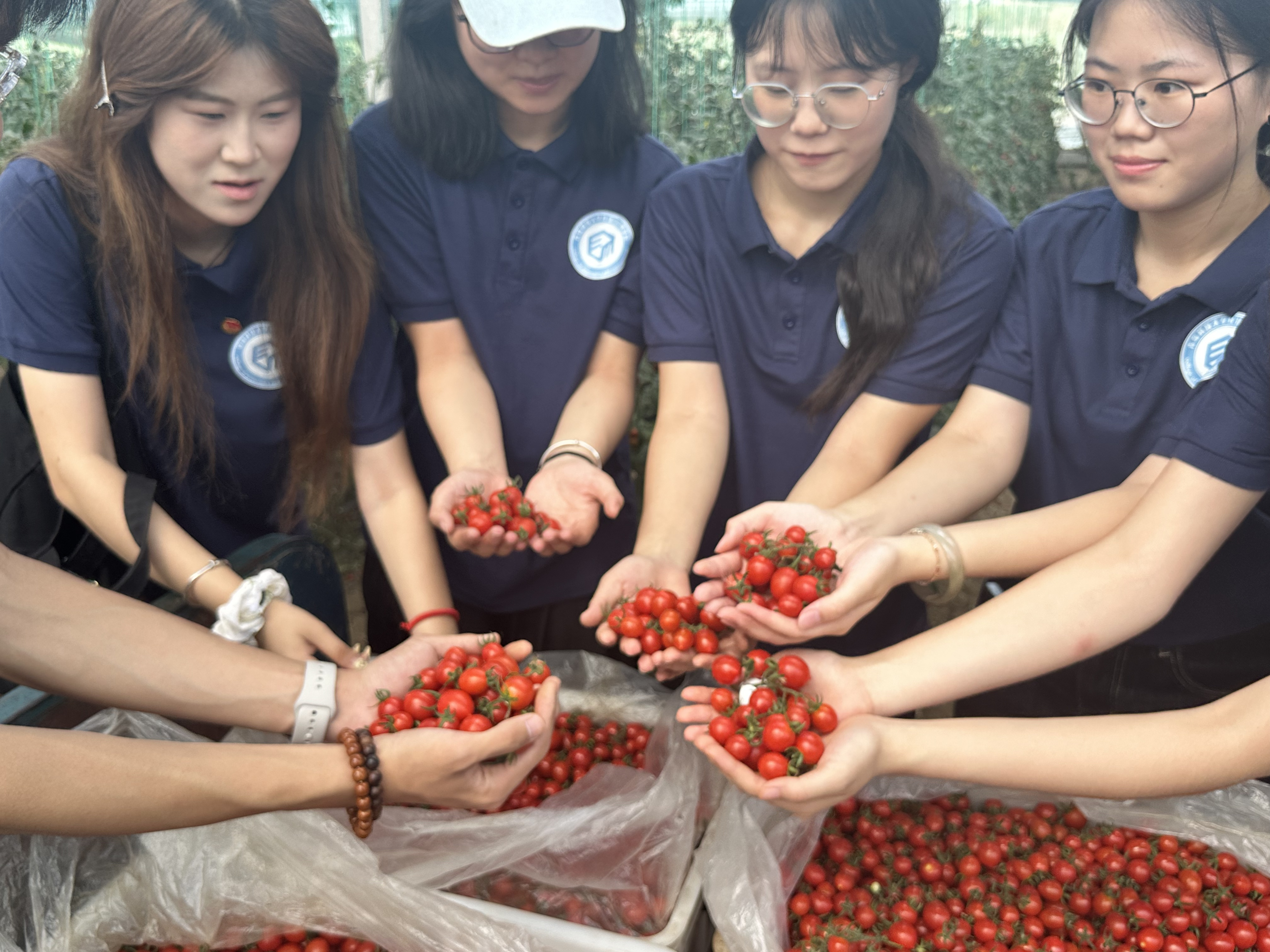 实践团还来到平度市明村镇白里村。在连片的种植大棚里,藤蔓间挂满饱满的果蔬,自动化设备有序运作,村民们忙碌的身影穿梭其间。当地种植户向队员们介绍,白里村通过“合作社牵头、农户参与、技术护航”的模式,实现了果蔬从“零散种植”到“规模经营”的转变,还借助电商平台拓宽销路,让新鲜果蔬直达全国各地,村民收入较往年有了显著提升。