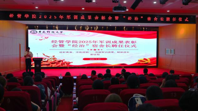 在第三报告厅举行2025年军训成果表彰会暨“经治”宿舍长聘任仪式。德州扑克俱乐部