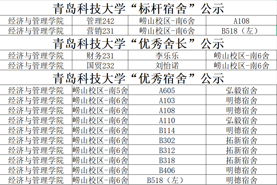 近日,青岛科技大学“标杆宿舍”“优秀宿舍”“优秀舍长”评选结果正式揭晓,我院多间宿舍、多位舍长凭借良好的宿舍氛围、突出的集体表现与责任担当,斩获多项荣誉,为德州扑克俱乐部