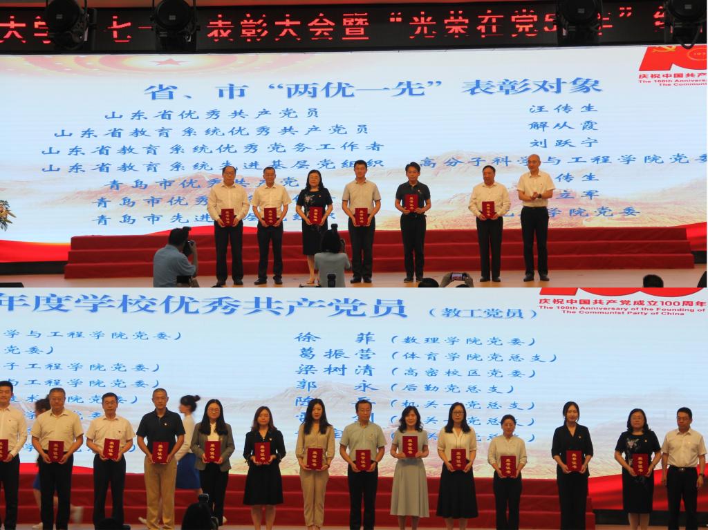 为隆重庆祝中国共产党成立100周年,进一步增强基层党组织凝聚力、战斗力、创造力,强化党员意识,表彰先进、树立典型,6月29日下午,青岛科技大学“七一”表彰大会暨“光荣在党50年”纪念章颁发仪式于崂山区第二报告厅隆重召开。校领导,院级党组织书记、副书记,党支部书记代表,党员代表参与会议。